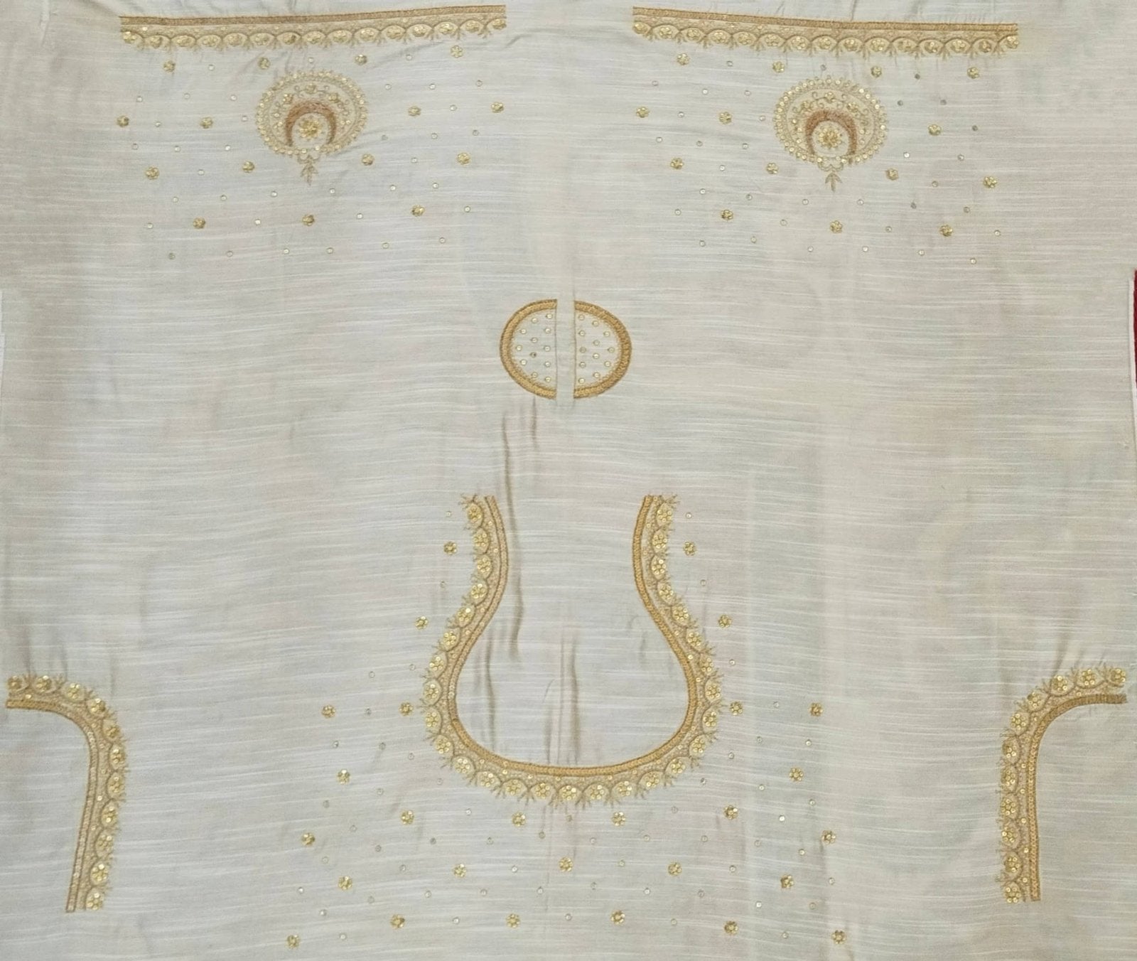This elegant blouse in rich Gaji silk features intricate Zardozi Chand Butta embroidery, blending traditional artistry with timeless style. Perfect for festive occasions and weddings, its detailed handwork adds a royal touch to any ensemble. Pair it with sarees or lehengas for a truly graceful and luxurious ethnic look.