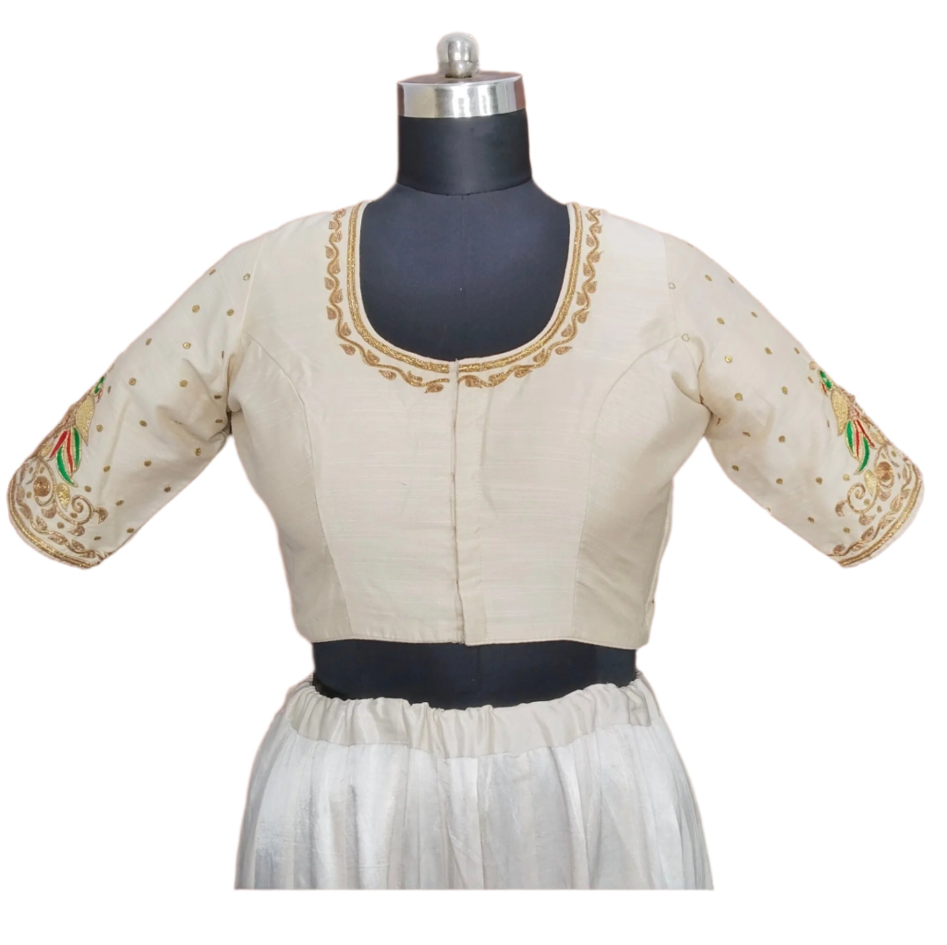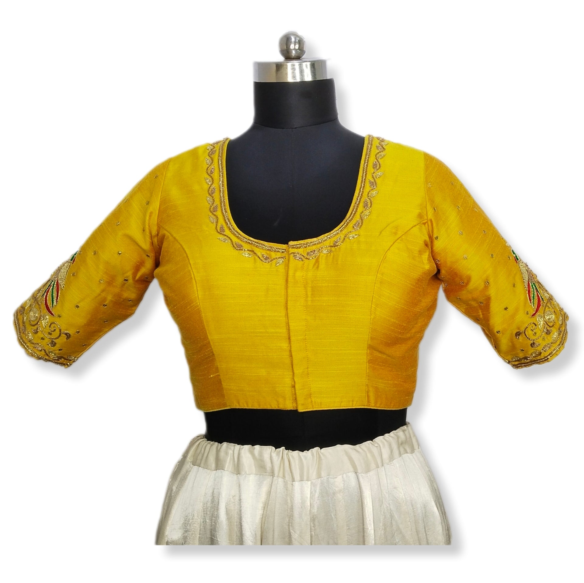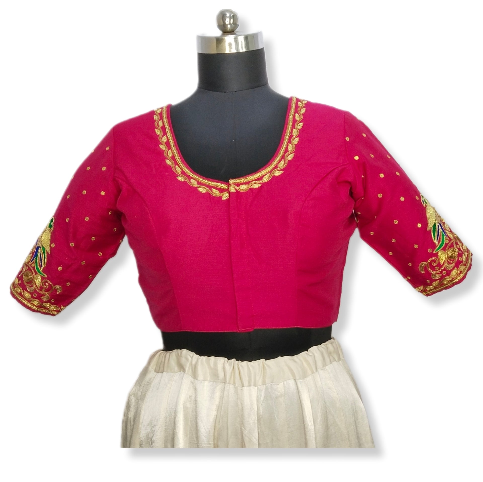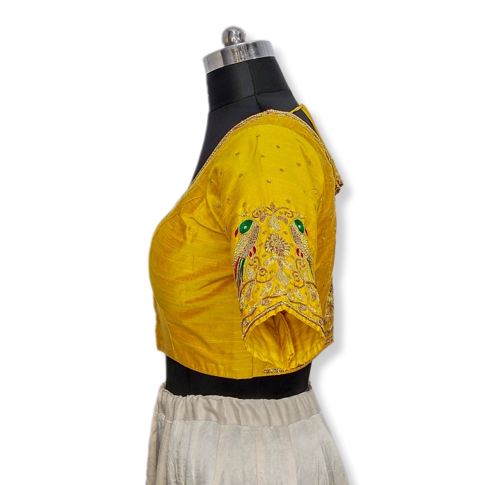 This vibrant Gujarati Patola blouse features an intricate parrot motif, symbolizing beauty and tradition. Crafted with rich colors and fine detailing, it reflects the timeless elegance of Patola weaving. Perfect for festive occasions, the blouse adds a cultural charm and bold style to any ethnic ensemble.