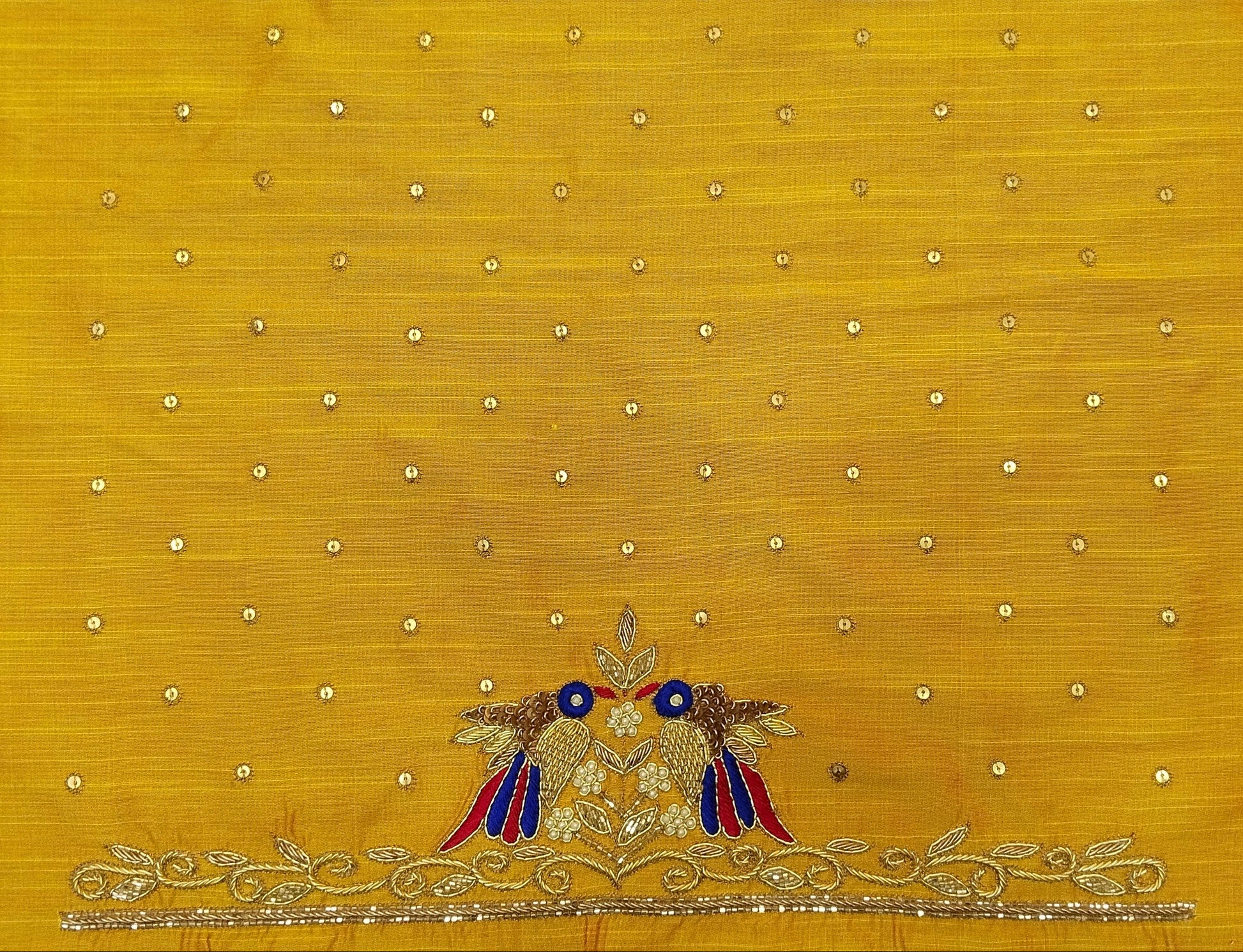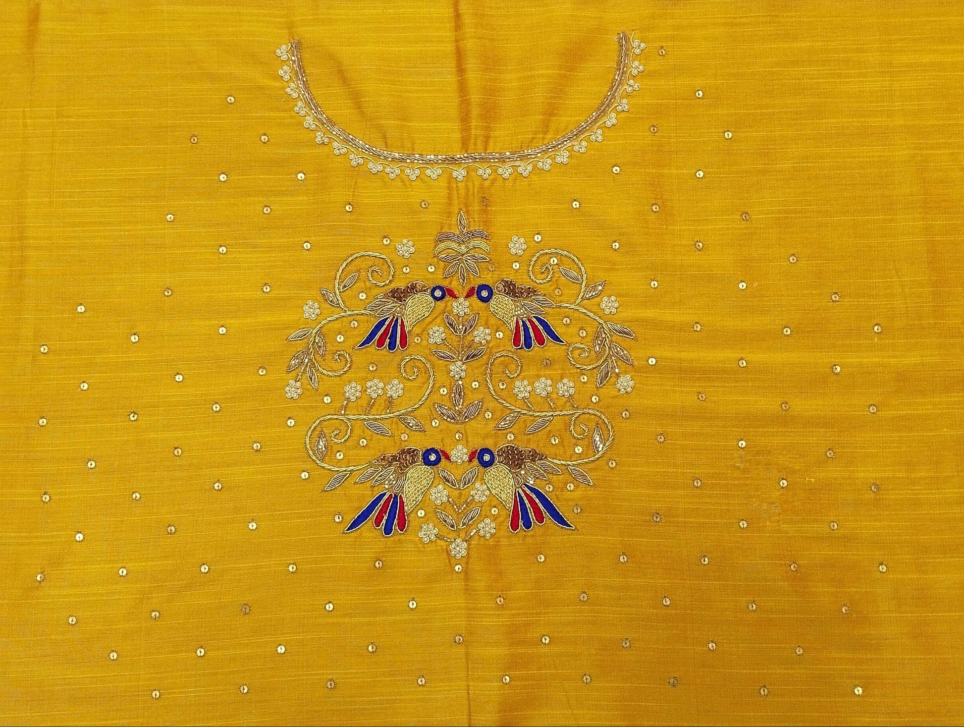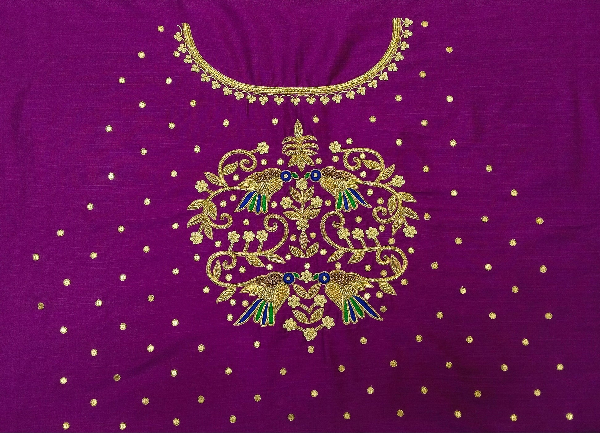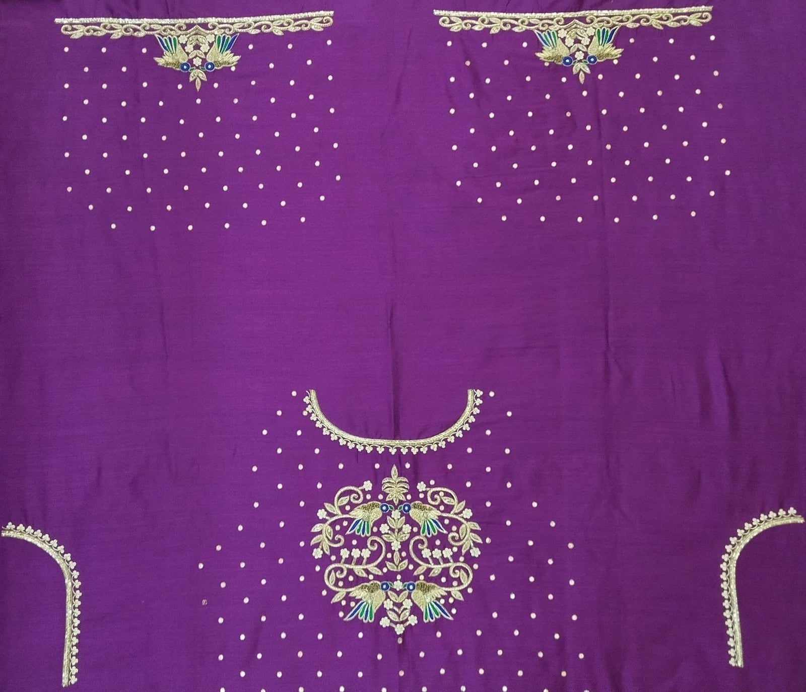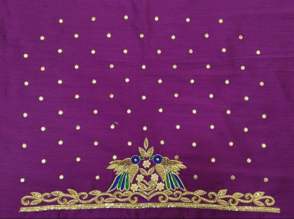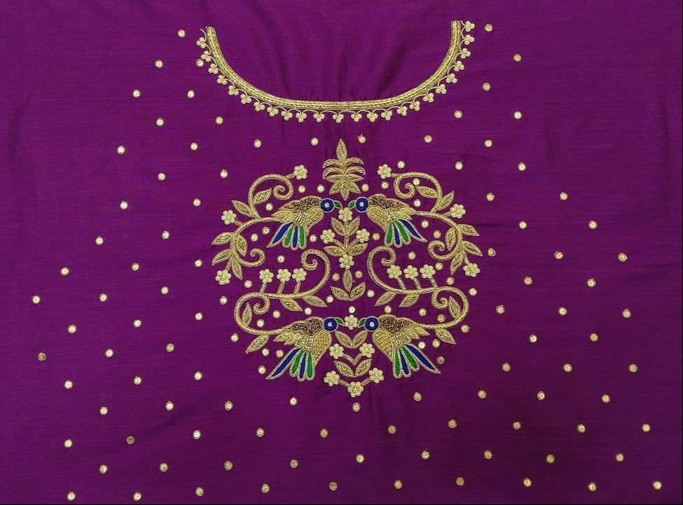 Beautiful Sparrow Zardozi Work Blouse Piece – exquisitely handcrafted with intricate zardozi embroidery. Featuring elegant sparrow motifs, this blouse piece is perfect for festive wear, weddings, or special occasions. Made from premium fabric, it offers both comfort and style. The detailed craftsmanship adds a regal charm, making it a must-have for your ethnic wardrobe. Pair it with sarees or lehengas for a stunning traditional look.