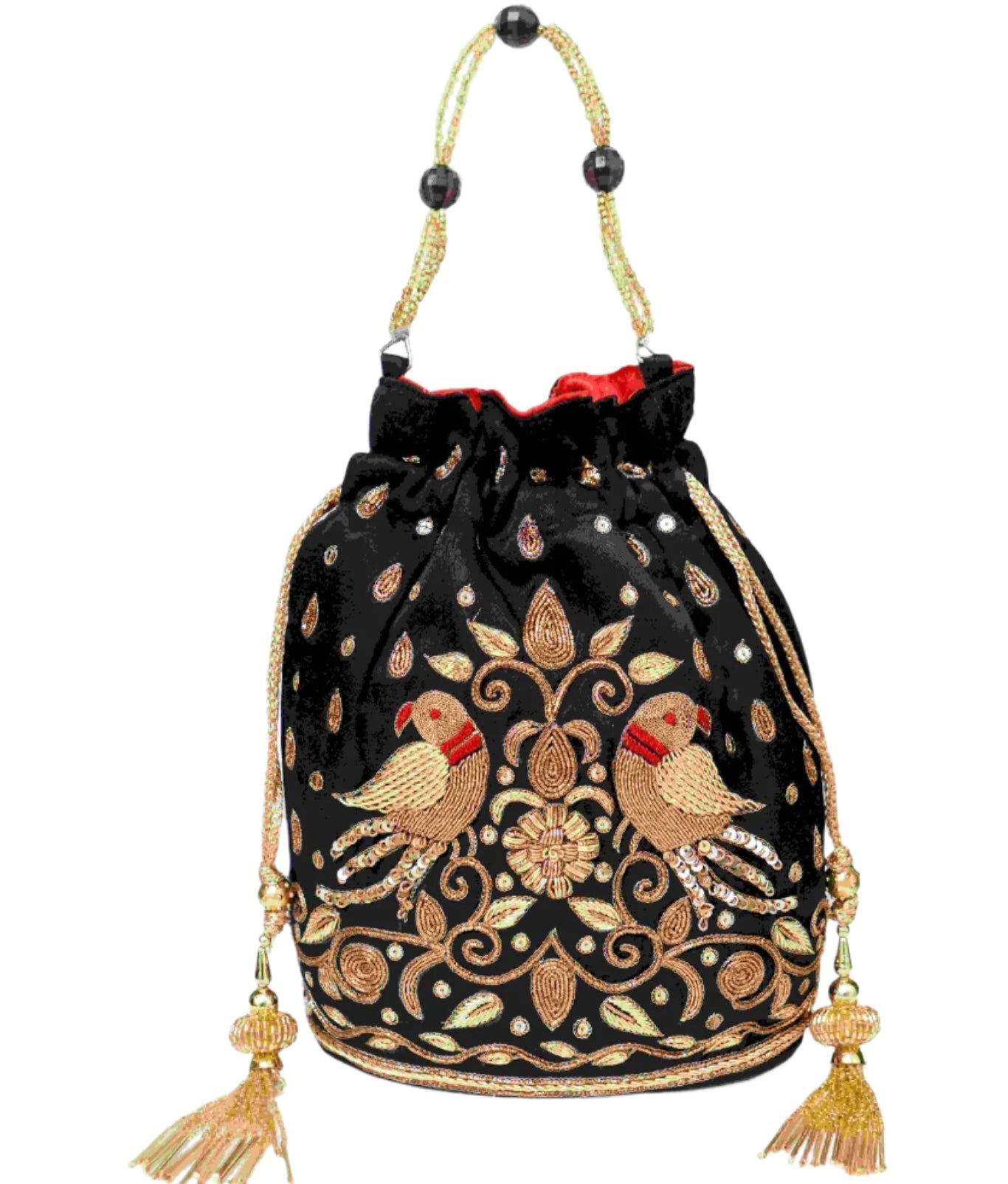 Beutyful Parrot Zardozi Work Potli Batwa (Black)