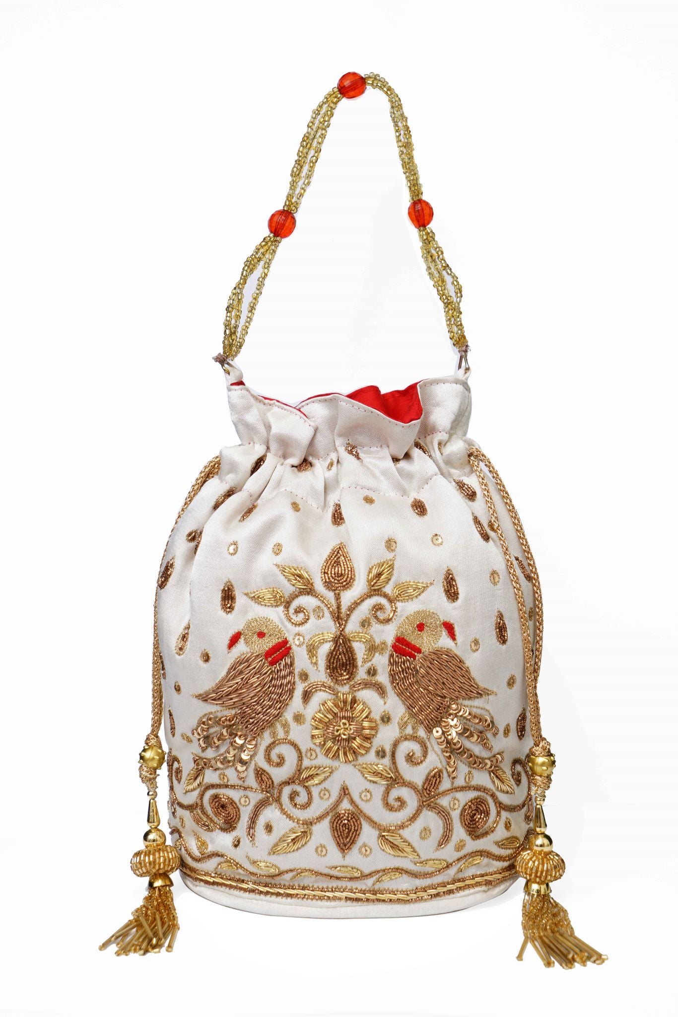 Beutyful Parrot Zardozi Work Potli Batwa (Off White)