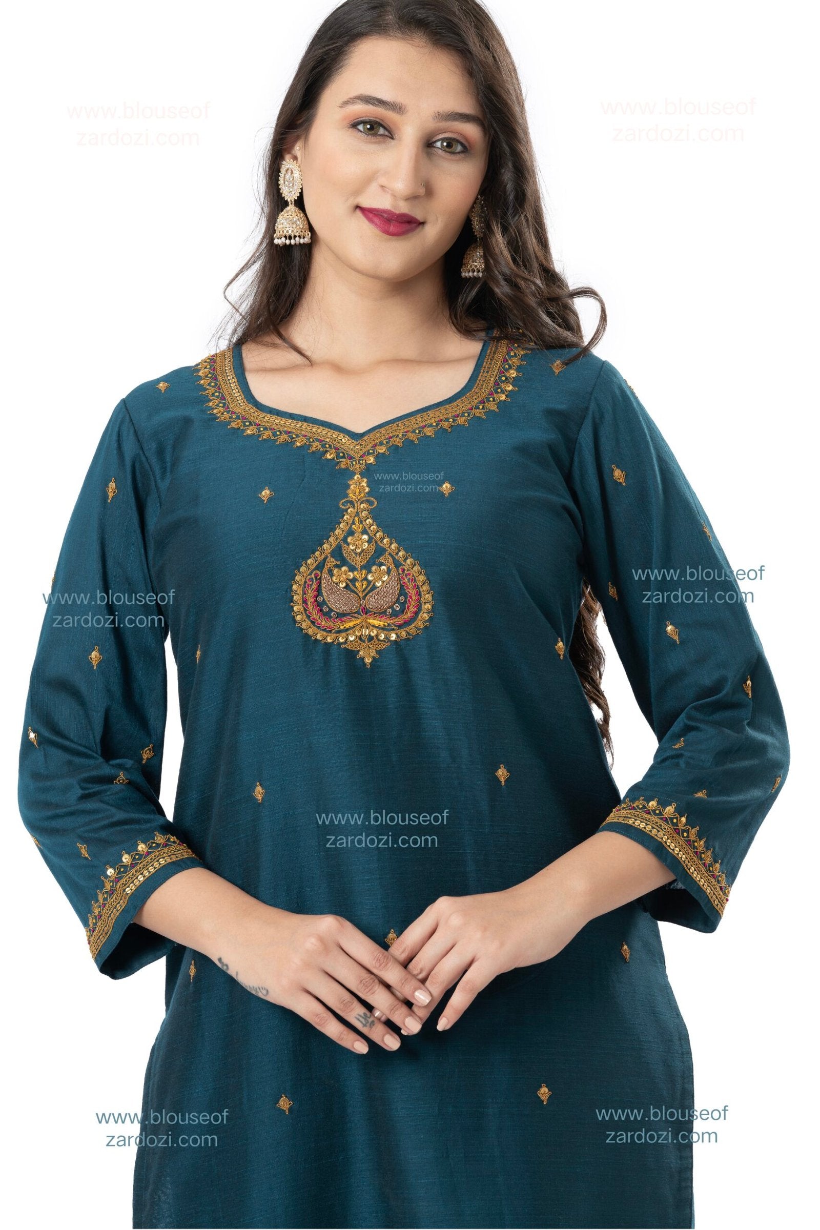 Elevate your ethnic style with this Blue Marodi Work Designer Kurta Set. Crafted from premium fabric, it features intricate hand-done Marodi embroidery, exuding timeless elegance. The rich blue hue enhances its regal appeal, making it perfect for weddings, festive occasions, and celebrations. A perfect blend of tradition and sophistication.
