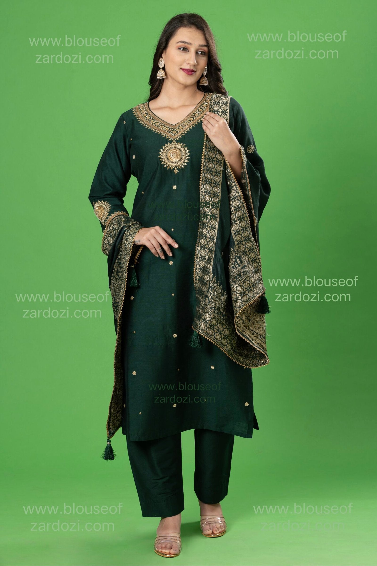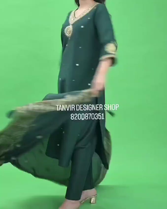 Embrace elegance with this Bottle Green Marodi Work Readymade Designer Dress. Crafted from premium fabric, it features intricate Marodi embroidery, exuding a regal charm. The rich bottle green hue enhances its sophistication, making it perfect for festive occasions and celebrations. A seamless blend of tradition and contemporary style for timeless grace.