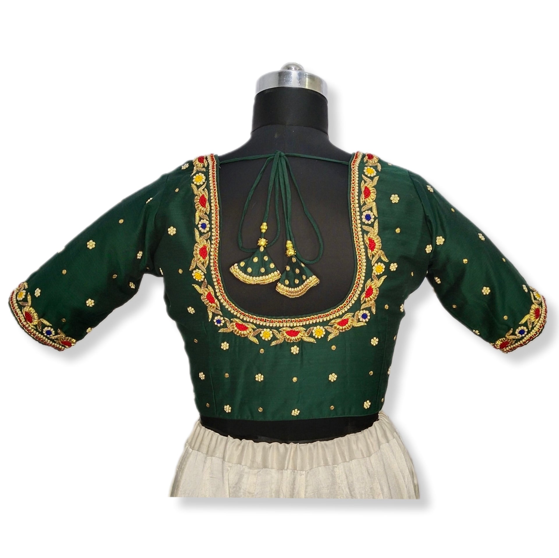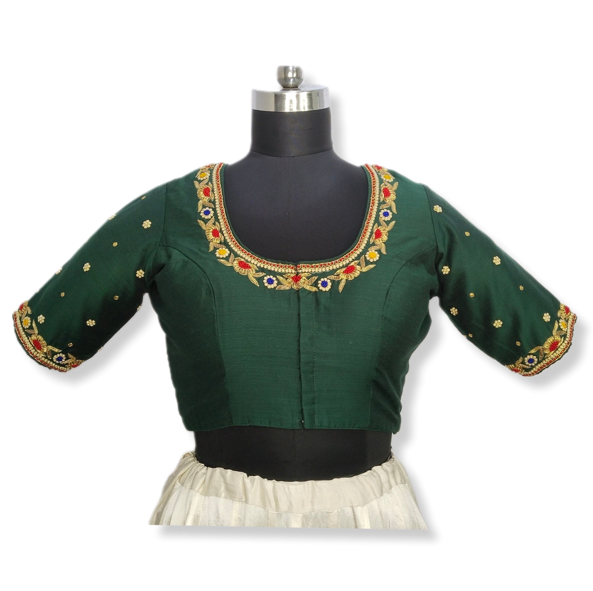 Floral Zardozi Handcrafted Designer Blouse (Bottle Green)