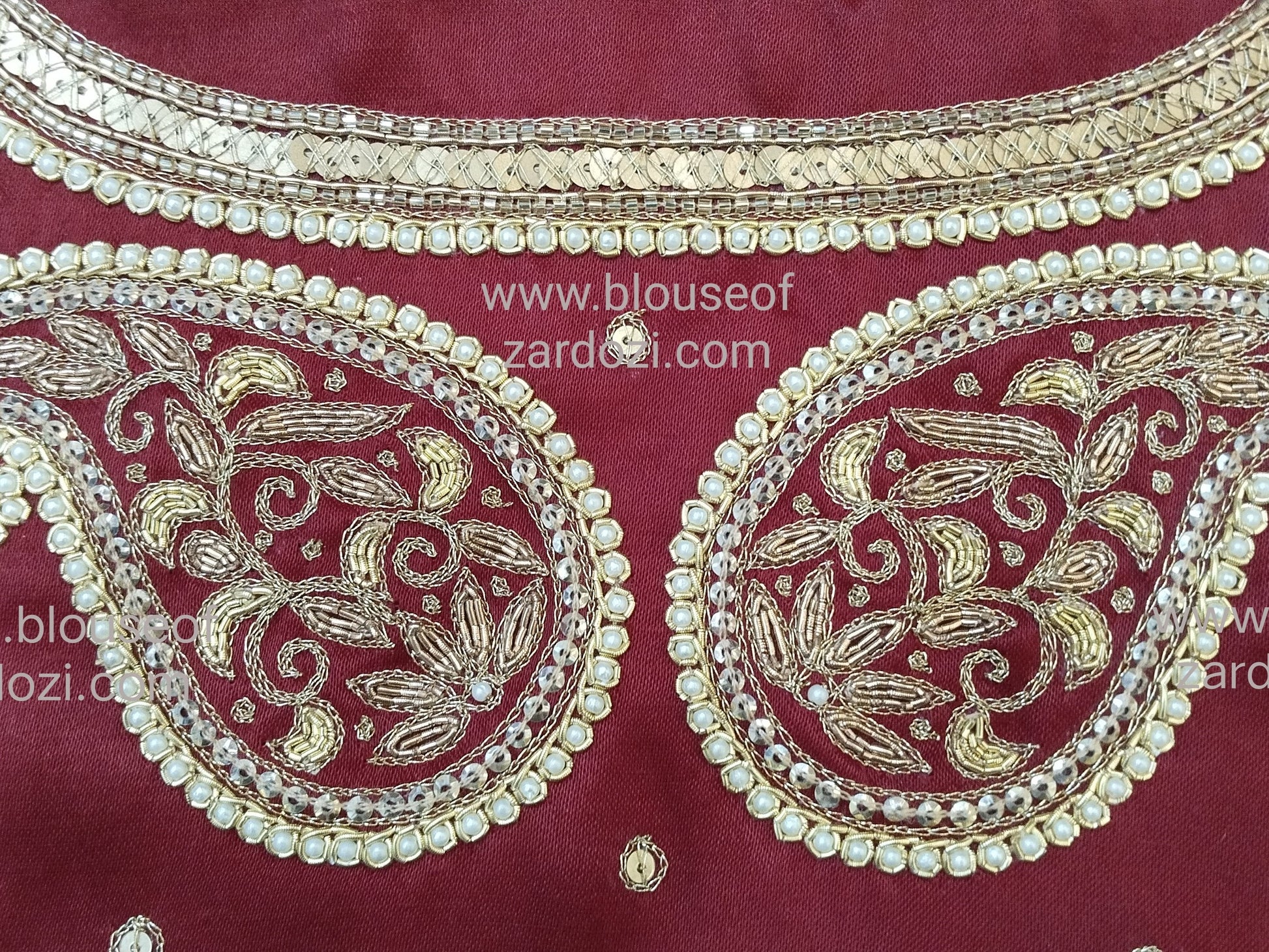 free Hand Zardozi Work Designer Blouse Pis. (Maroon)