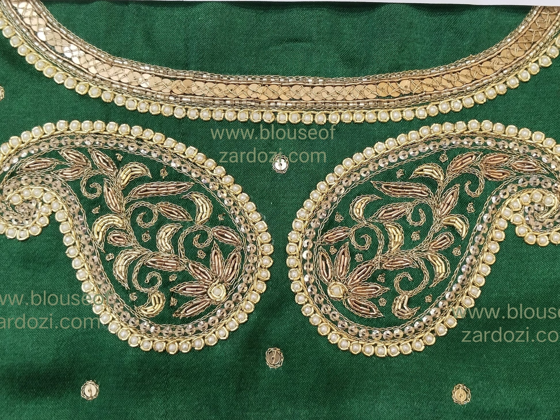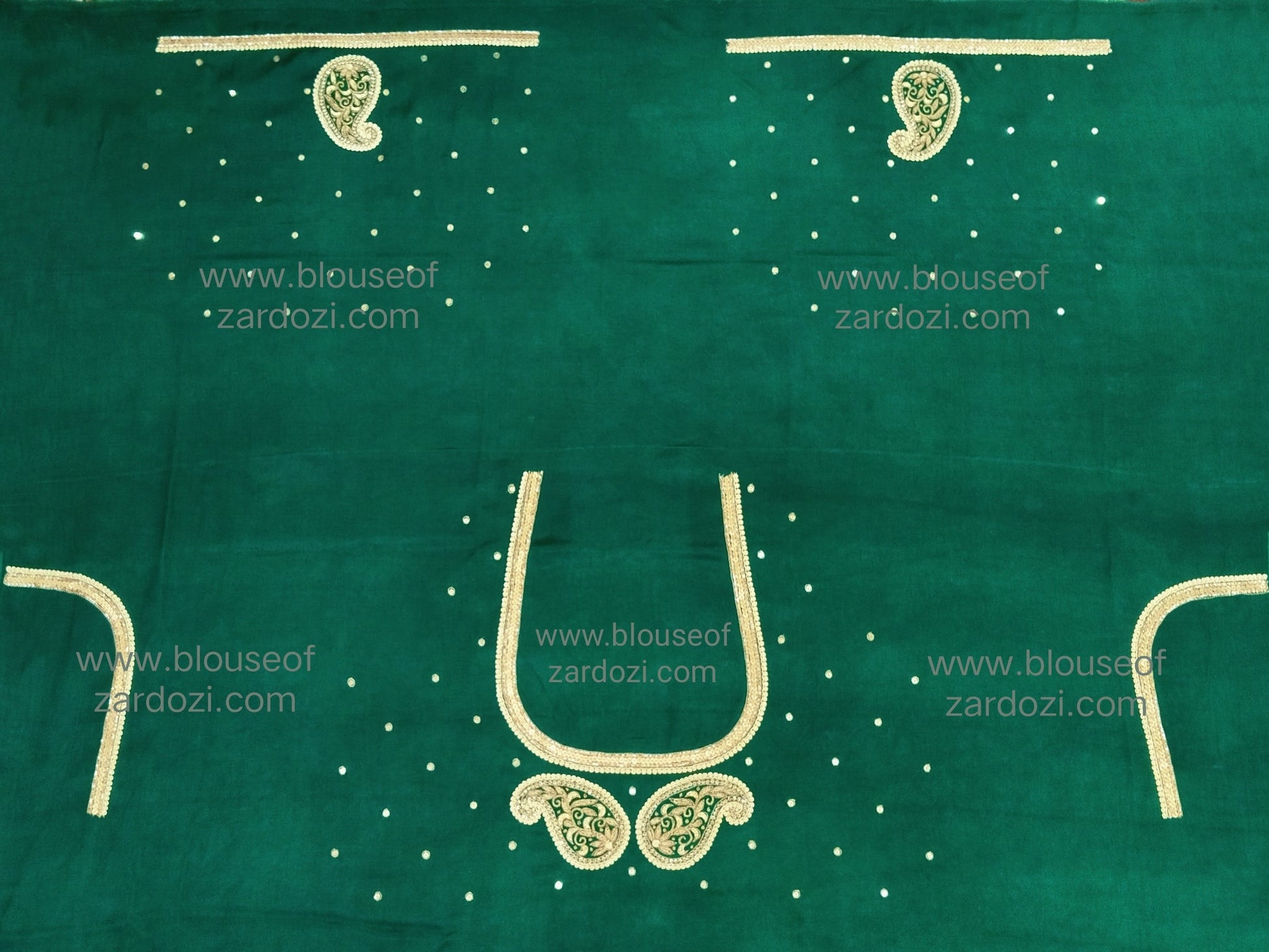 free Hand Zardozi Work Designer Blouse Pis. (Bottle Green)
