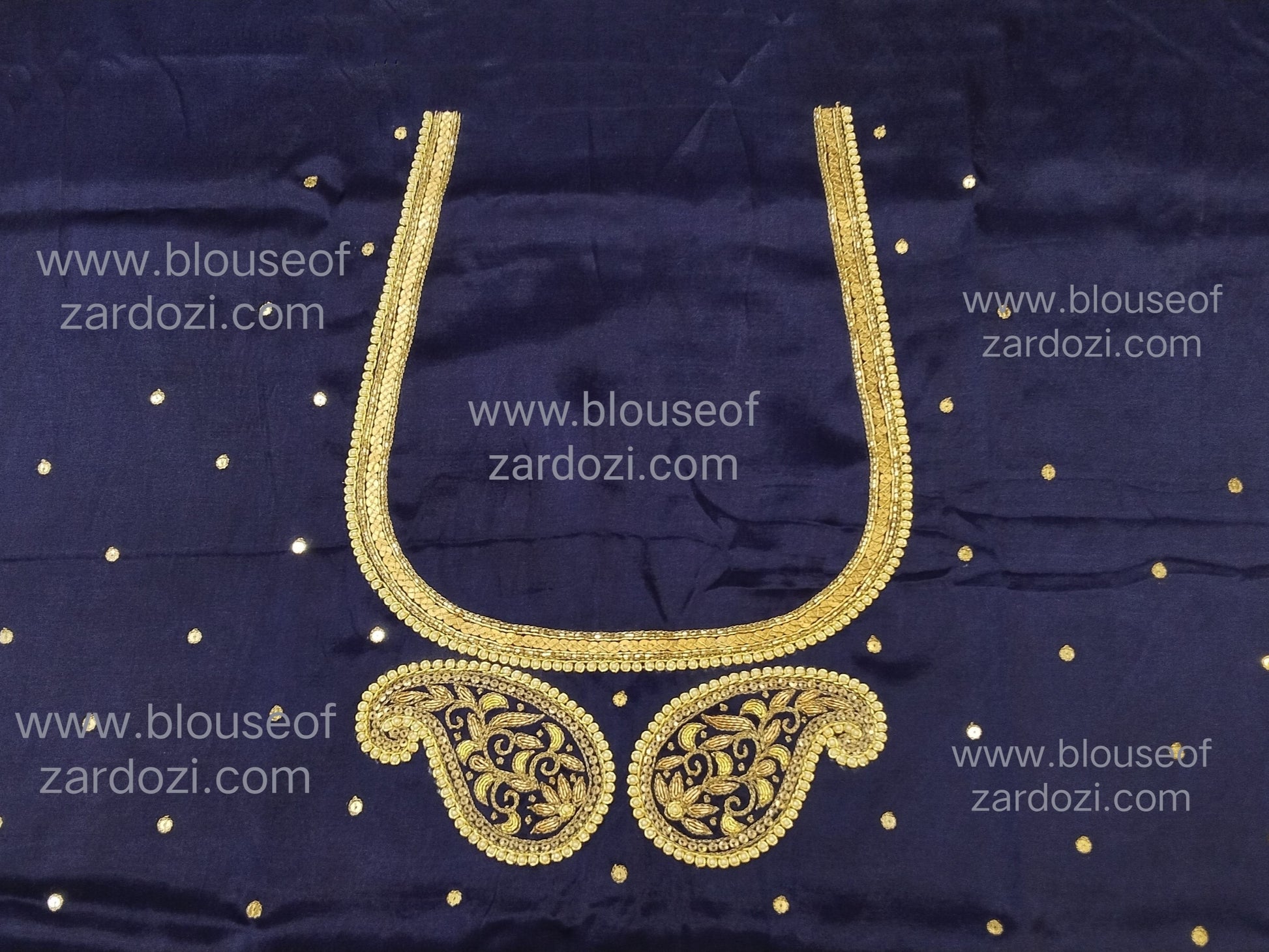 free Hand Zardozi Work Designer Blouse Pies. (Navy Blue)