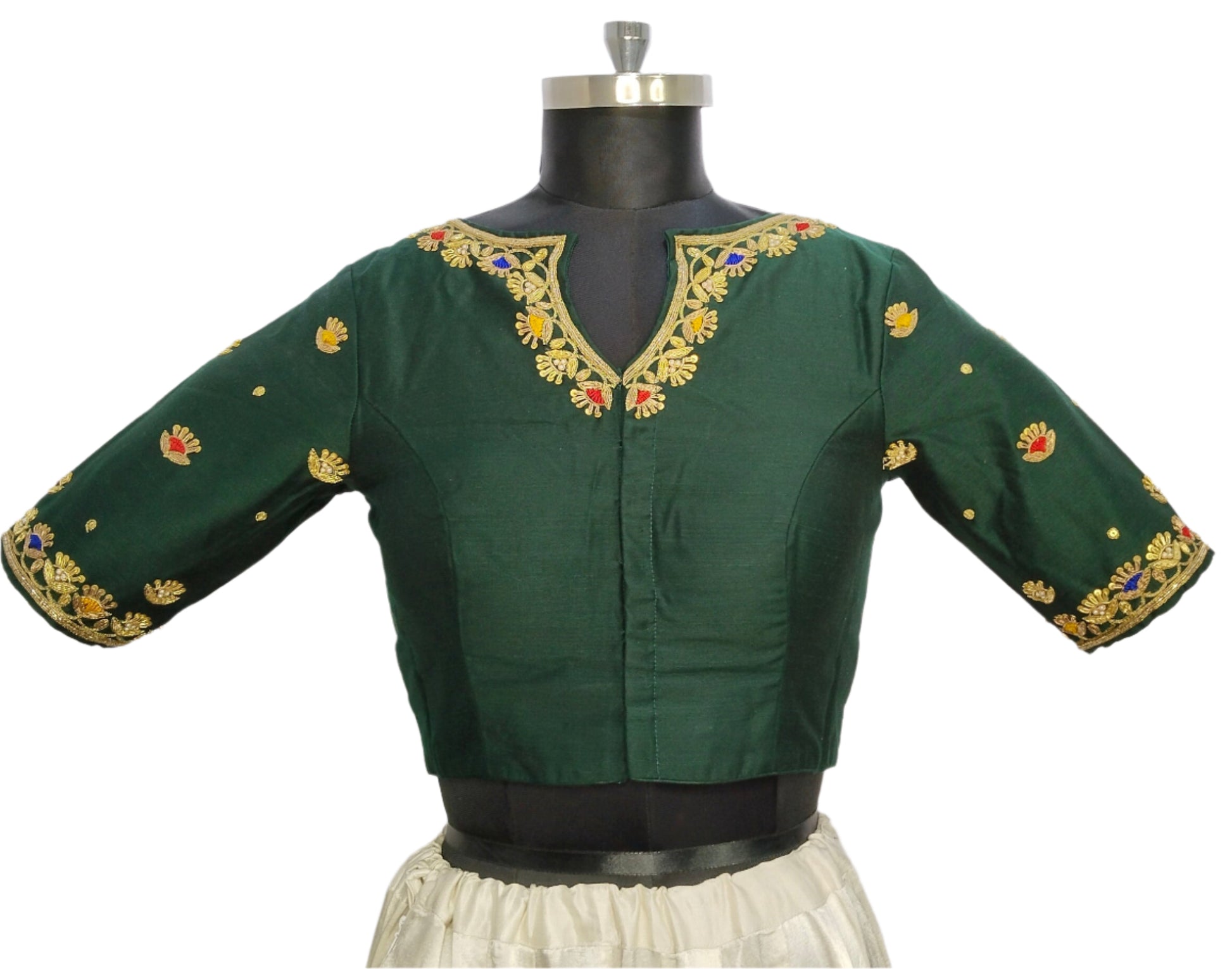 Handcrafted Blouse with Traditional Zardozi Embroidery (Bottle Green)