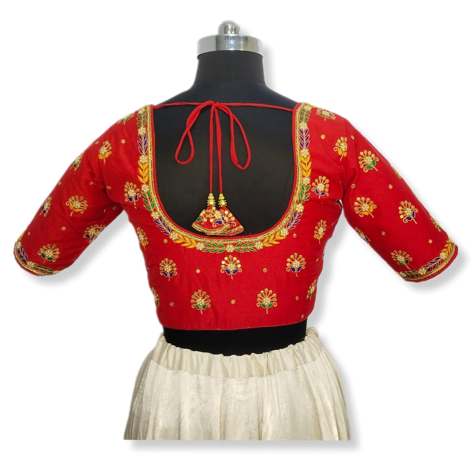 Heritage Blouse – Zardozi Embroidered with Round cut Design (Red)
