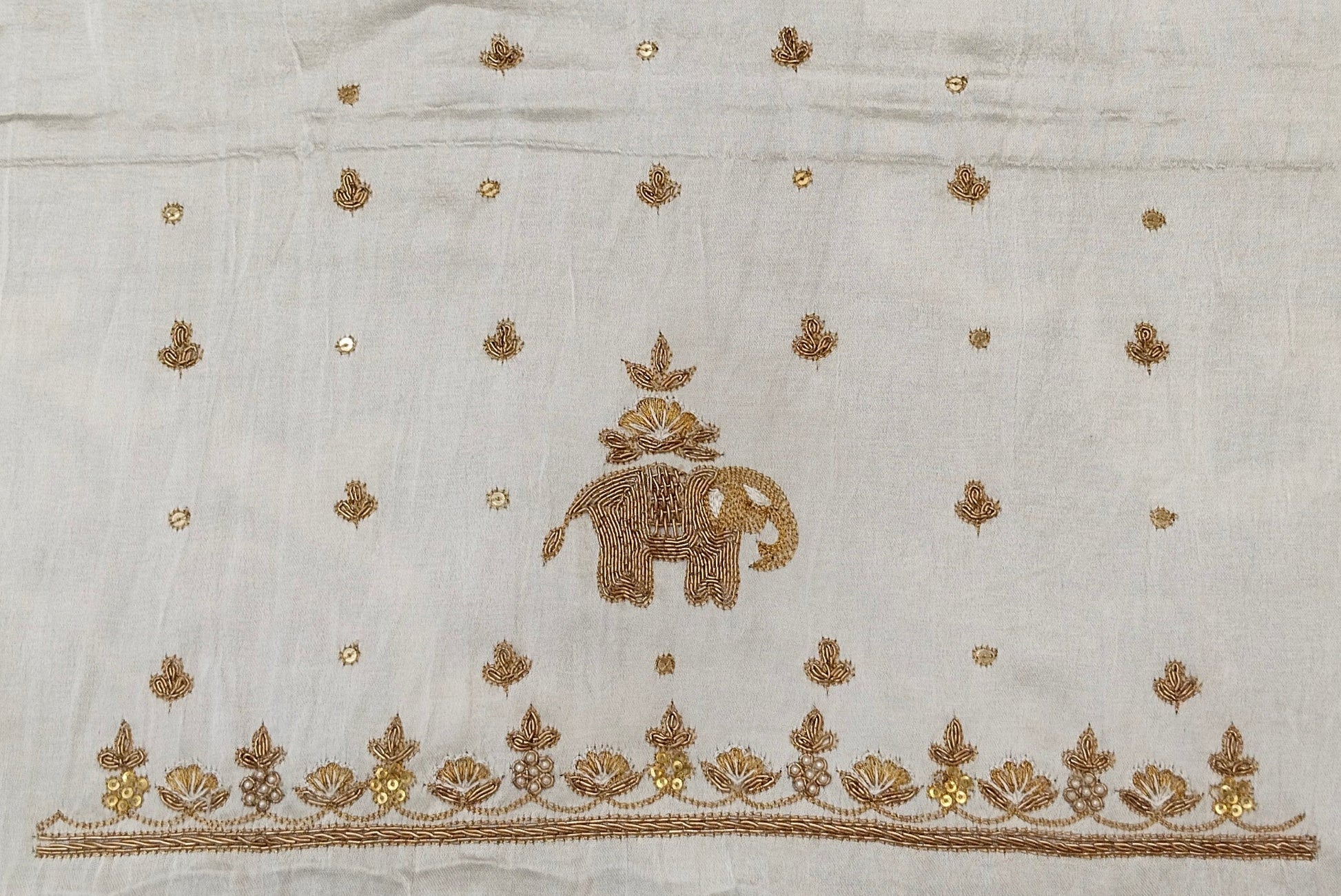 Heritage Elephant Embroidered Blouse piece (Off White)