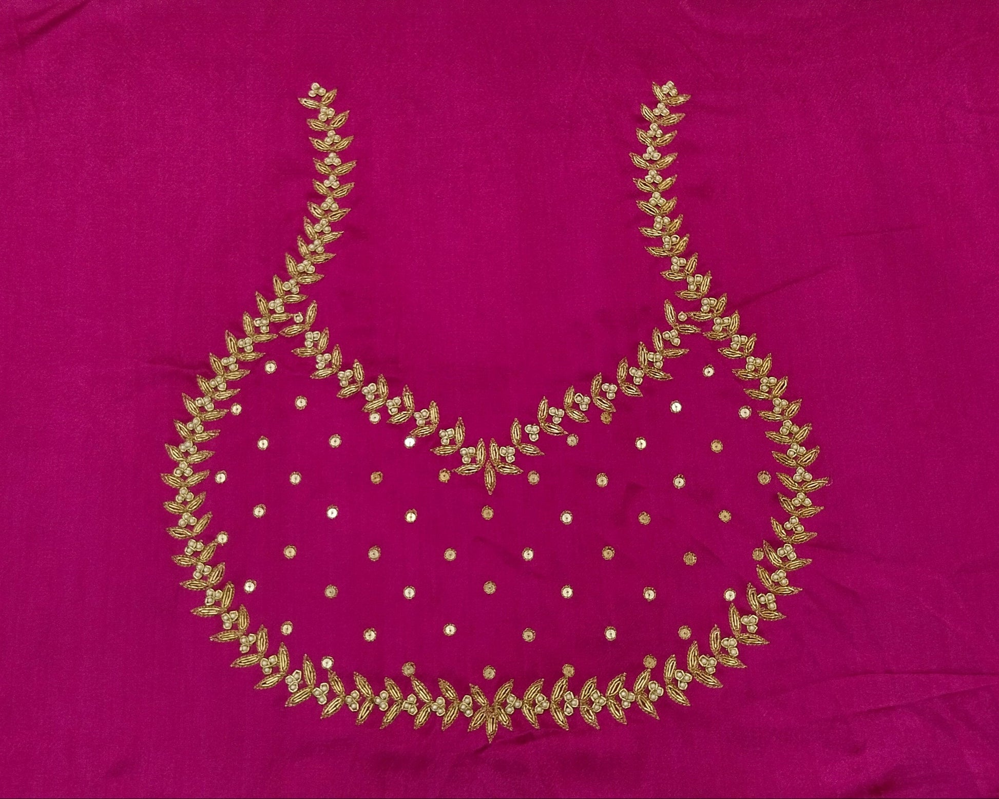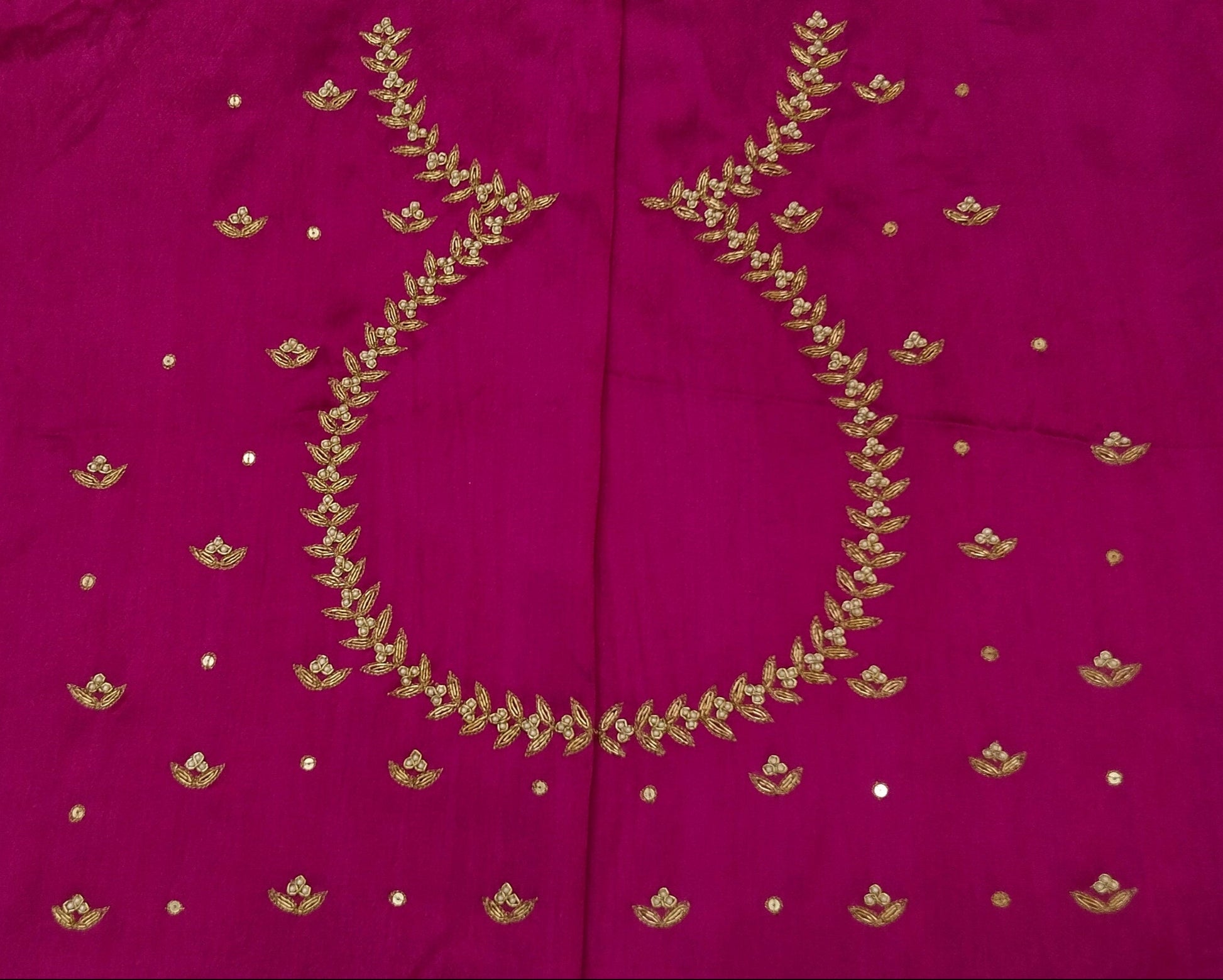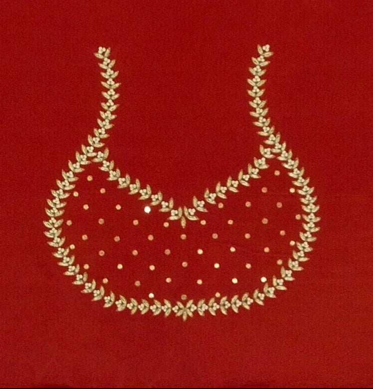 This unstitched blouse piece is crafted from luxurious Gaji silk, featuring intricate embroidery of majestic elephants and fierce lions. The rich texture of Gaji silk complements the powerful design, with the elephants symbolizing strength and the lions embodying courage. The fine detailing of these regal creatures adds a touch of grandeur and sophistication. Perfect for creating a statement piece, this blouse is ideal for pairing with sarees, lehengas, or any traditional ensemble, exuding both elegance and power.