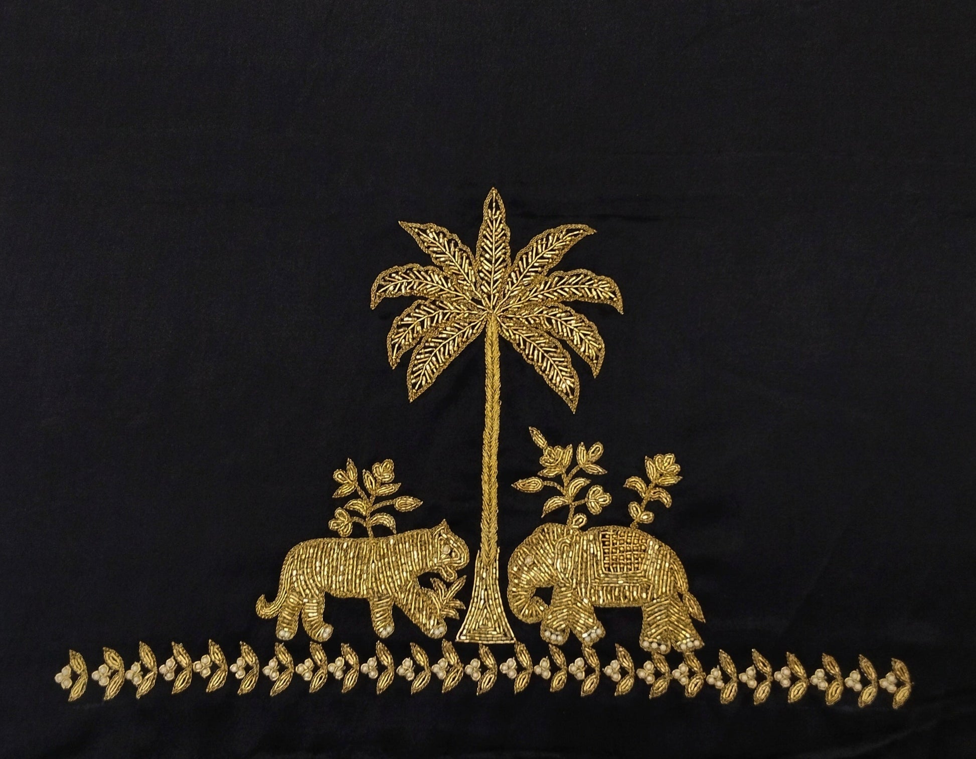 Majestic Elephants & Lions Embroidered Blouse (Black)