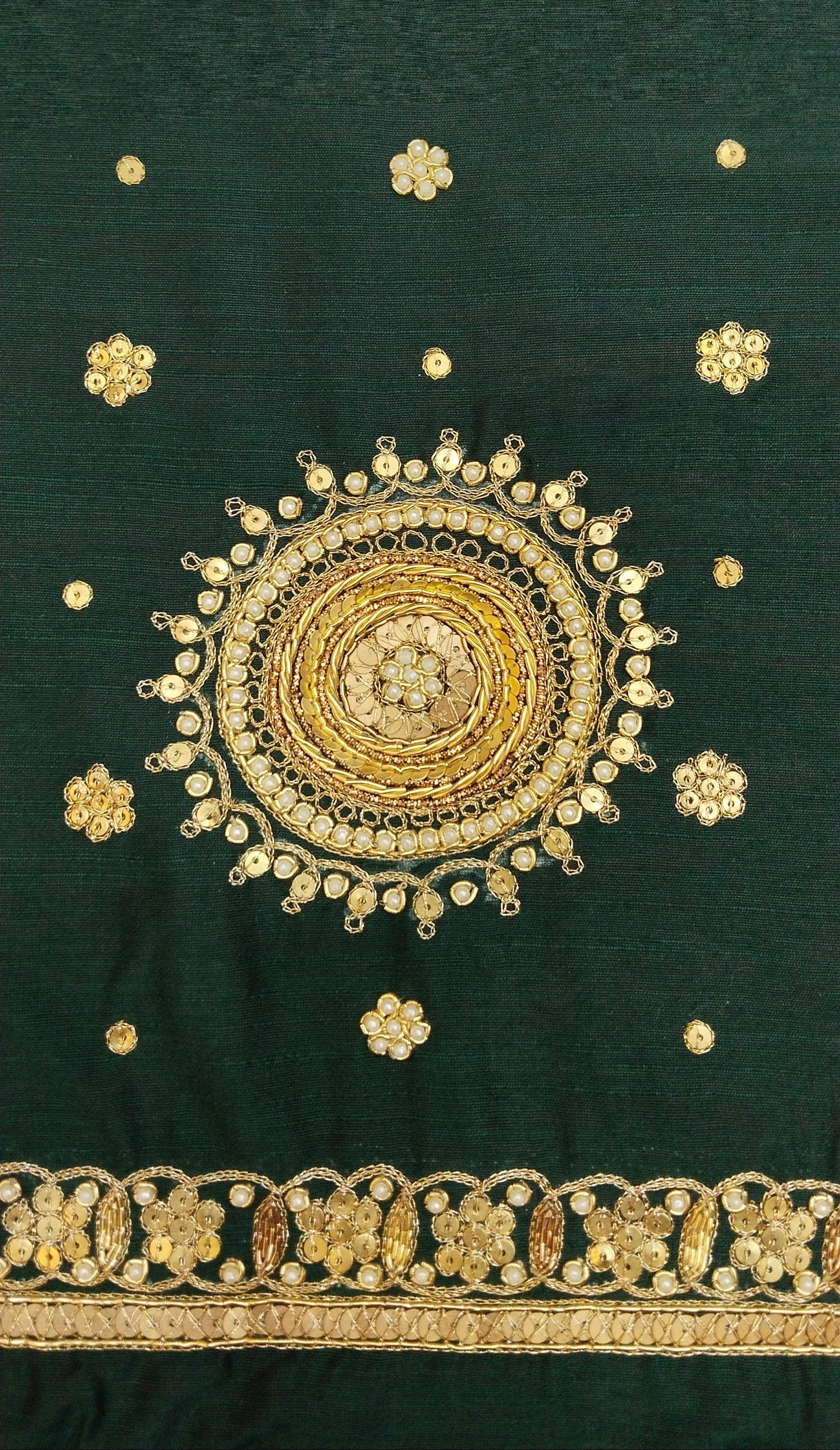 Experience refined elegance with the Mini Mandala Butta Zardozi Work Blouse. Made from luxurious Gaji silk, this unstitched blouse fabric features delicate mandala butta motifs and intricate zardozi embroidery. Easily tailored from size 36 to 46, it's perfect for festive wear, adding a touch of tradition and charm.