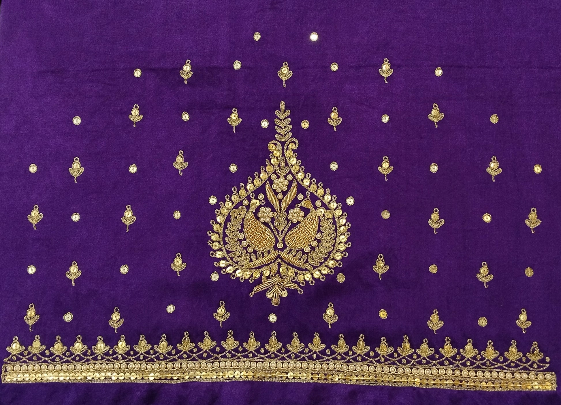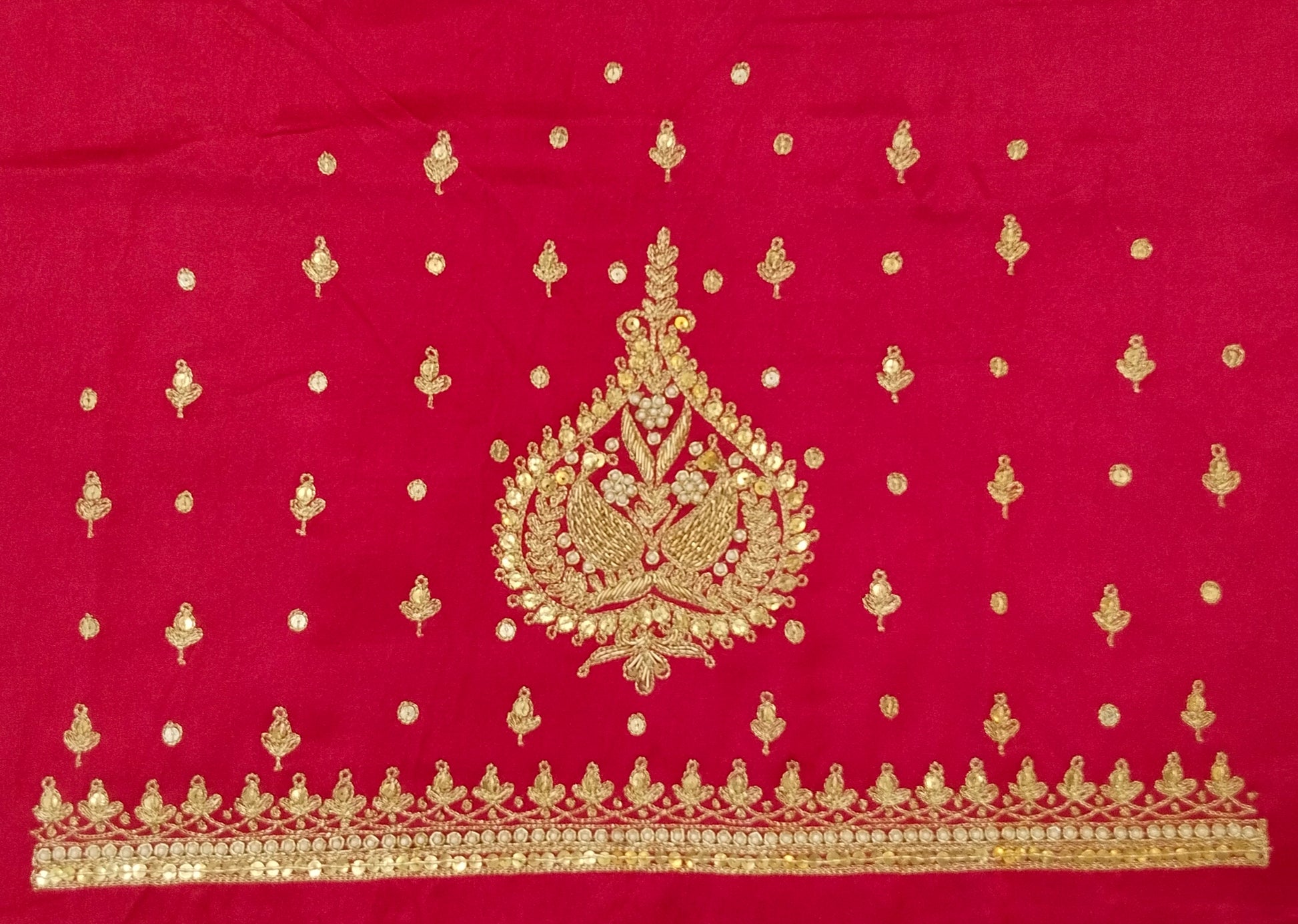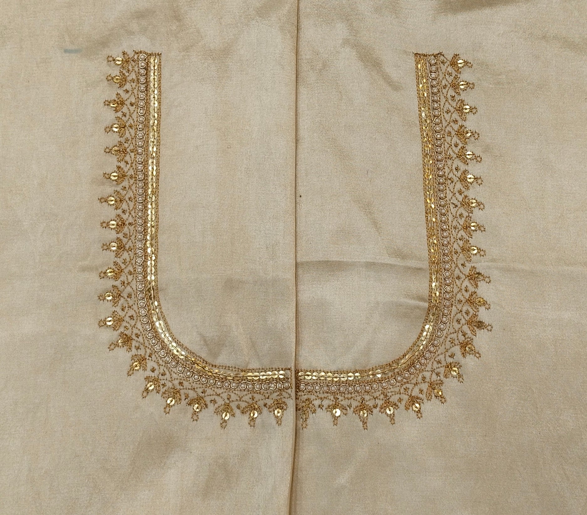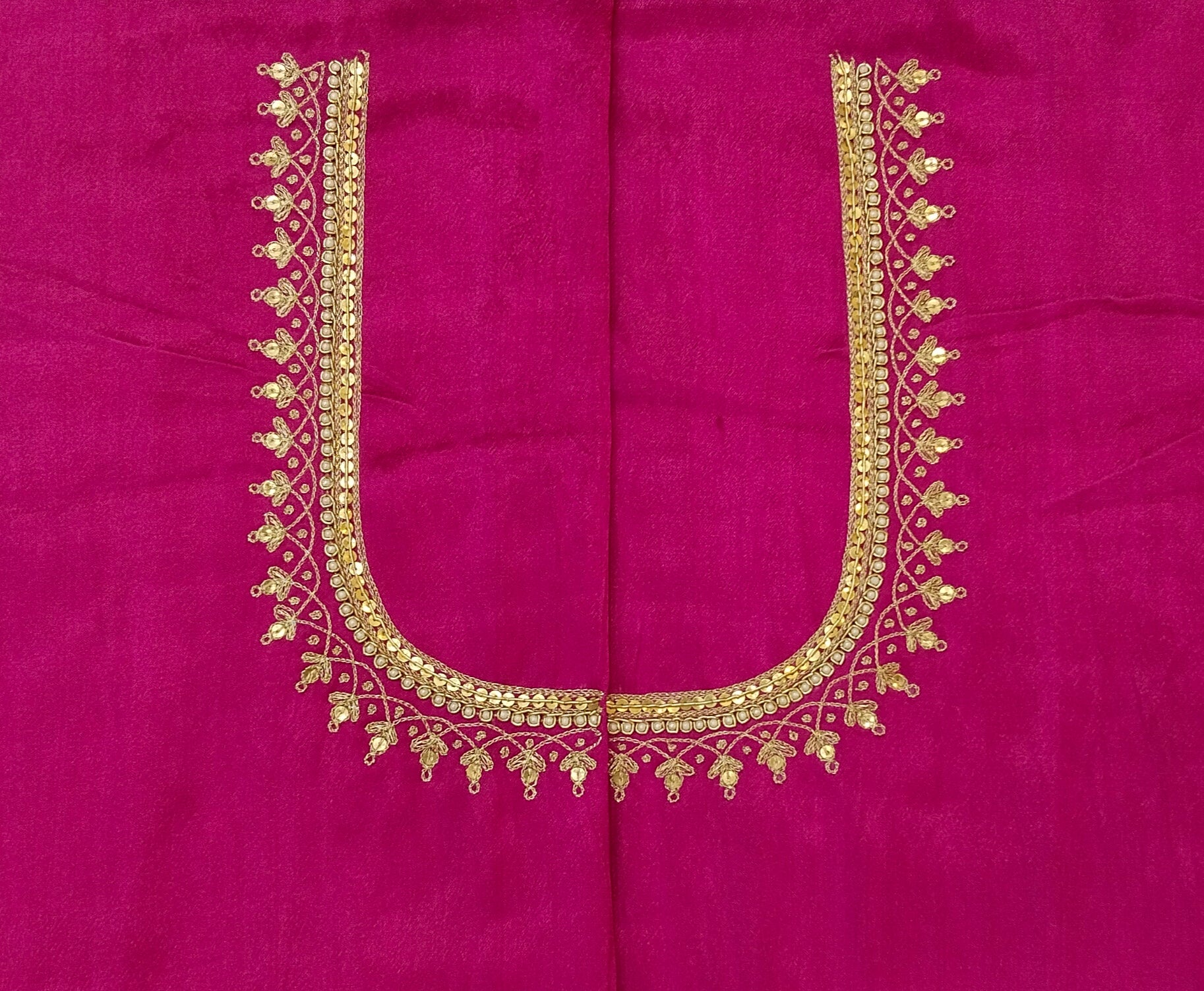 This unstitched blouse piece is crafted from premium Gaji silk, known for its rich texture and graceful drape. Adorned with timeless embroidery, the detailed sleeve and neckline patterns offer a touch of classic elegance. Perfect for festive and ethnic wear, its exquisite craftsmanship and refined design make it an ideal choice for traditional celebrations and special occasions.