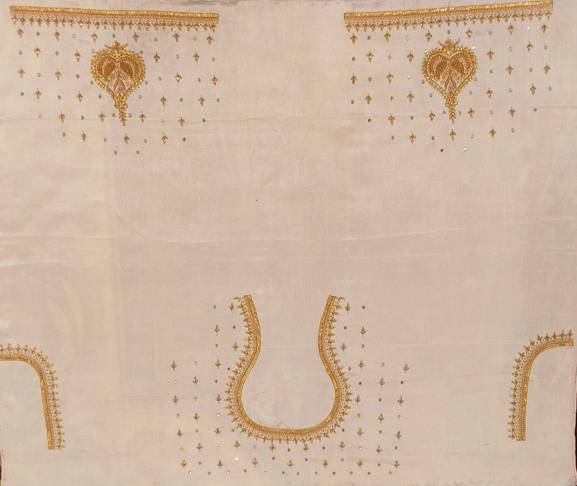 This unstitched blouse piece is crafted from premium Gaji silk, known for its rich texture and graceful drape. Adorned with timeless embroidery, the detailed sleeve and neckline patterns offer a touch of classic elegance. Perfect for festive and ethnic wear, its exquisite craftsmanship and refined design make it an ideal choice for traditional celebrations and special occasions.