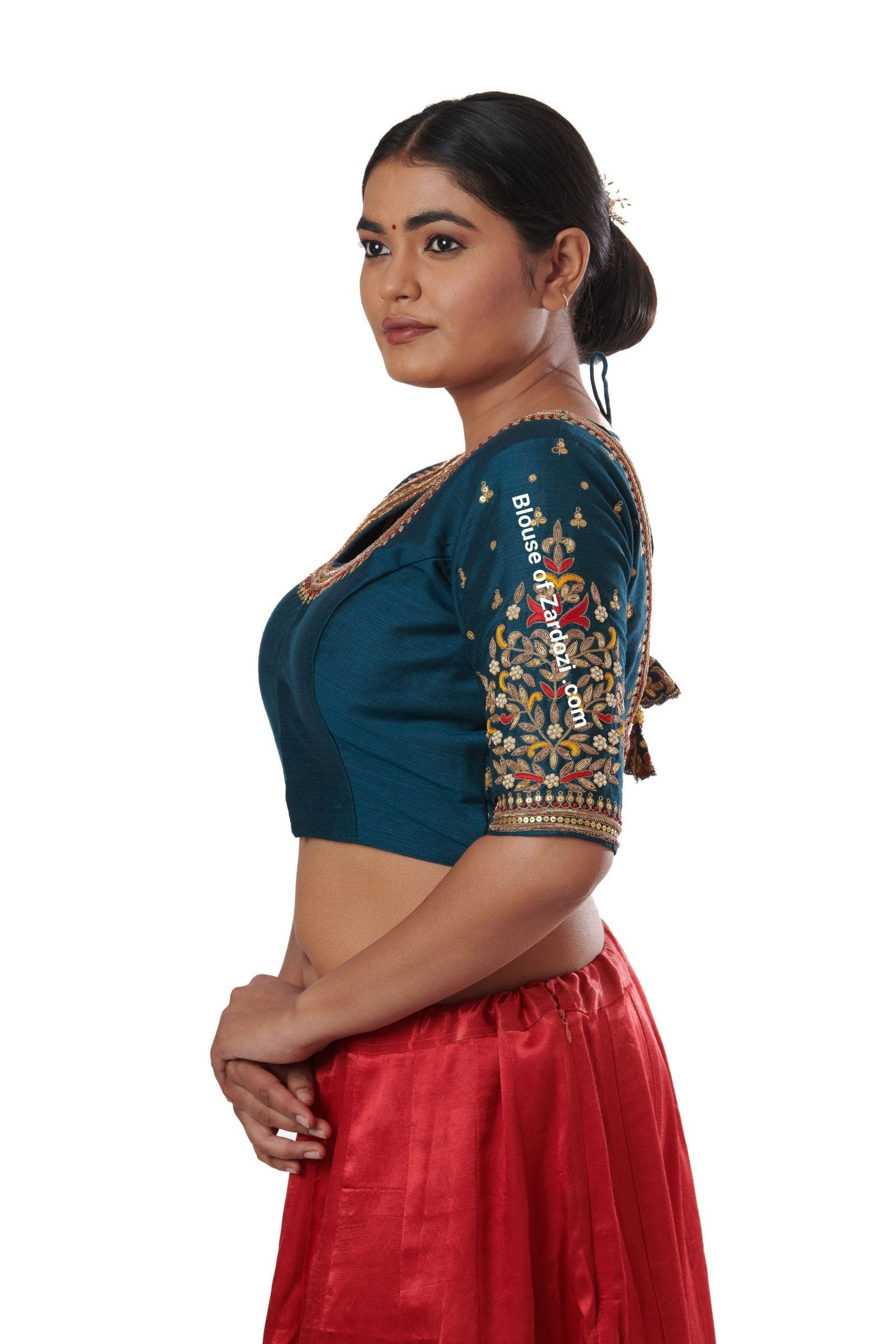 Ornate tri-colour princess line blouse (Turkish Blue)