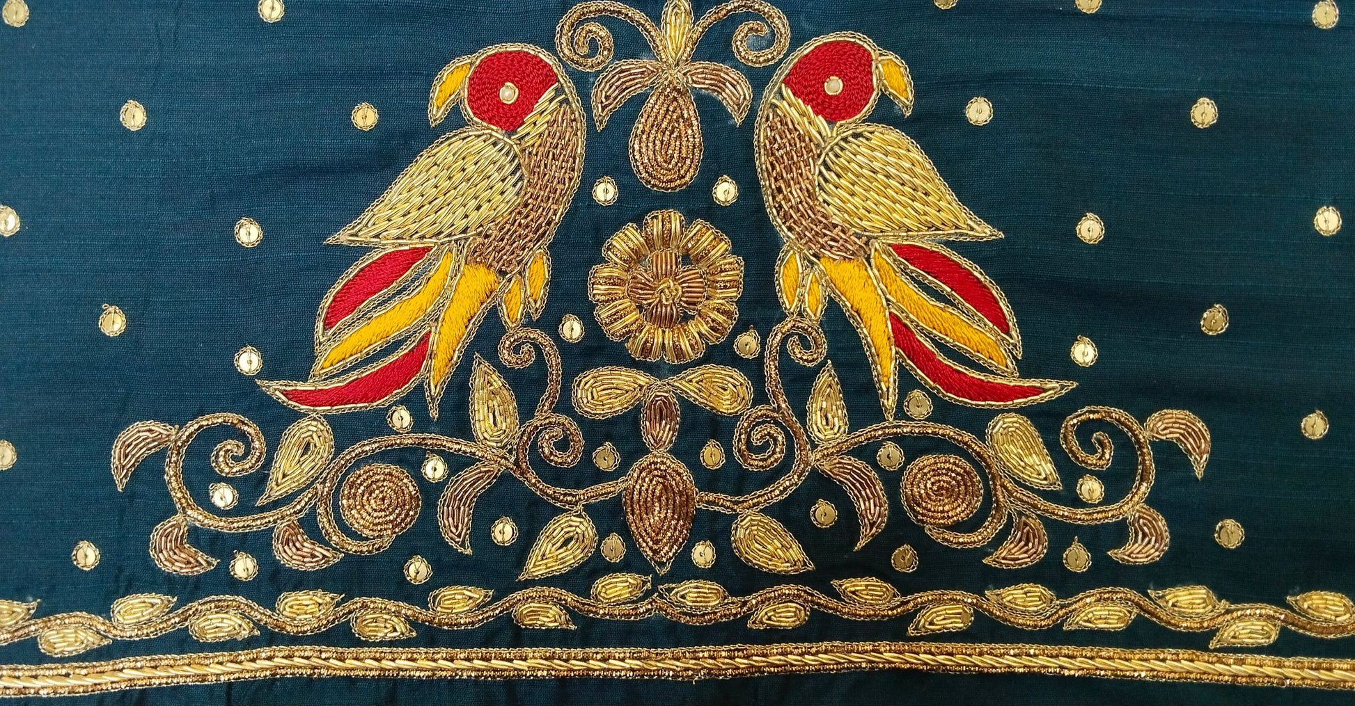 Parrot Patola Zardozi Work Blouse Pis. (Turkish Blue)