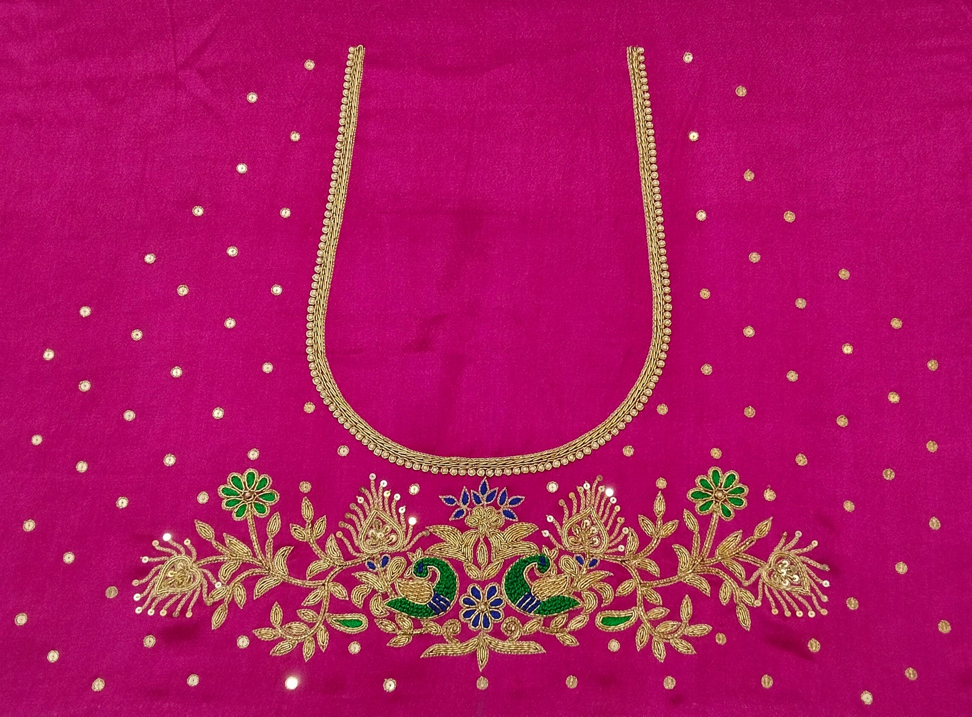 Peacock Elegance Blouse Piece (Dark Pink)