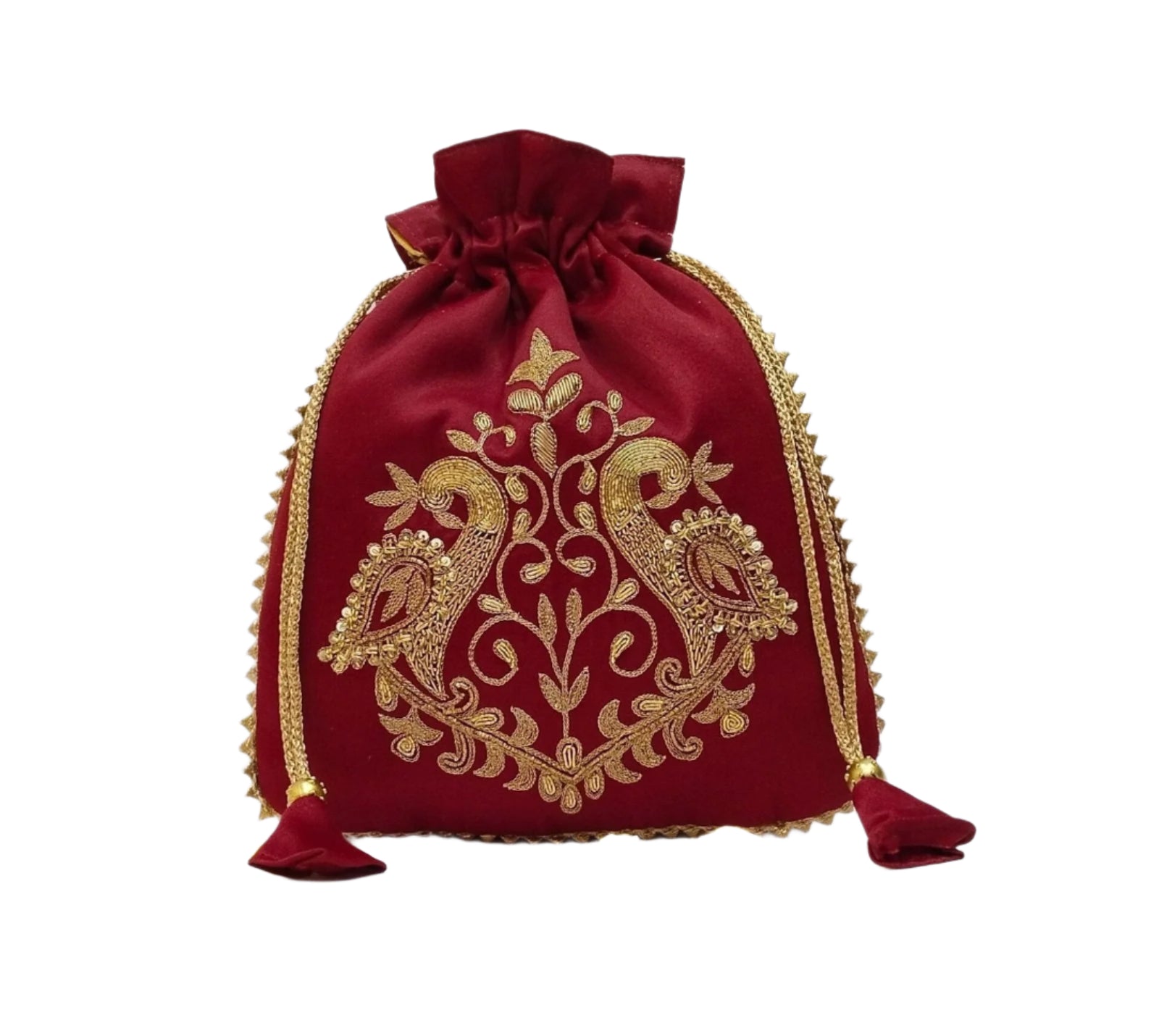 Peacock Zardozi Potli Batwa (Maroon)