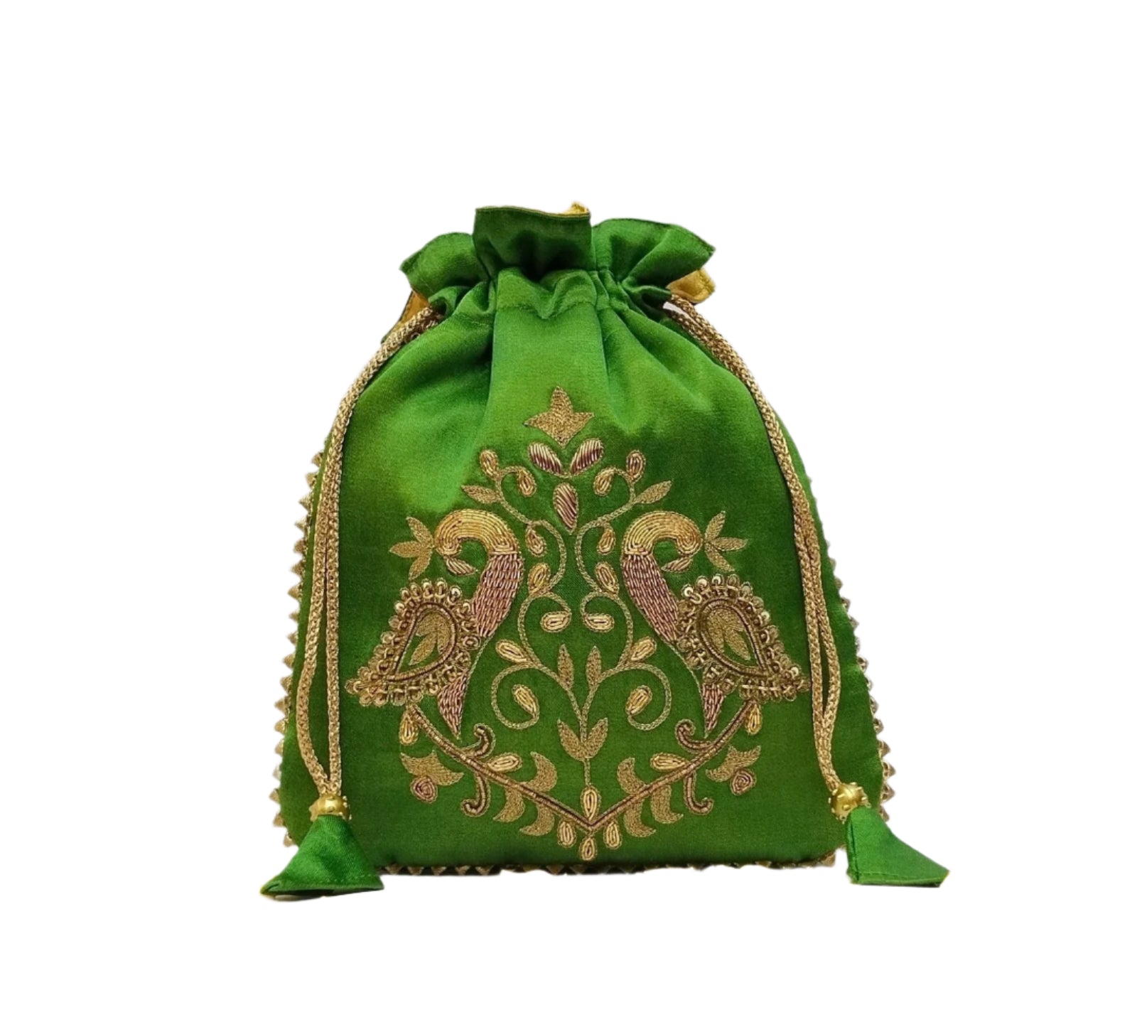 Peacock Zardozi Potli Batwa (Parrot Green)