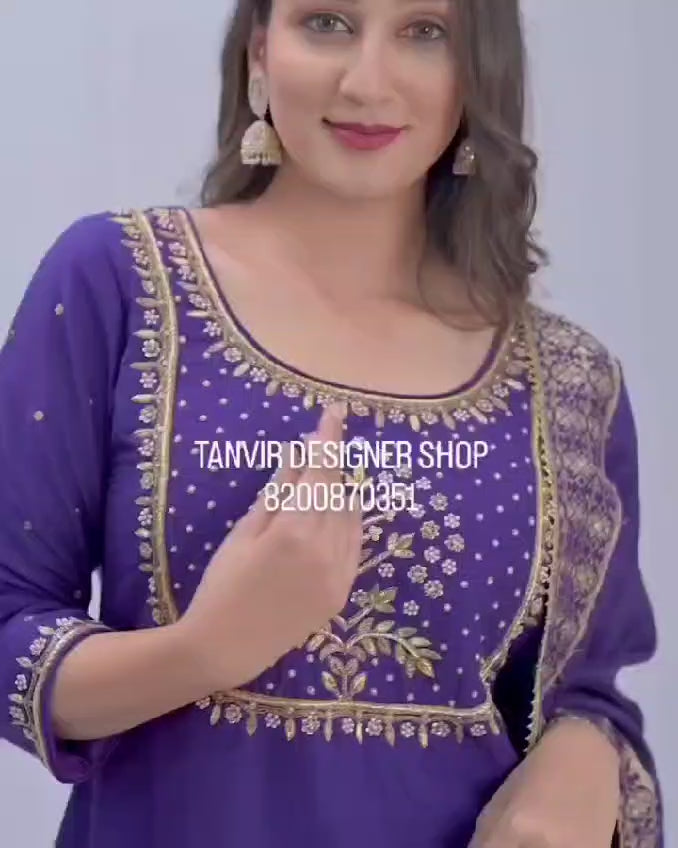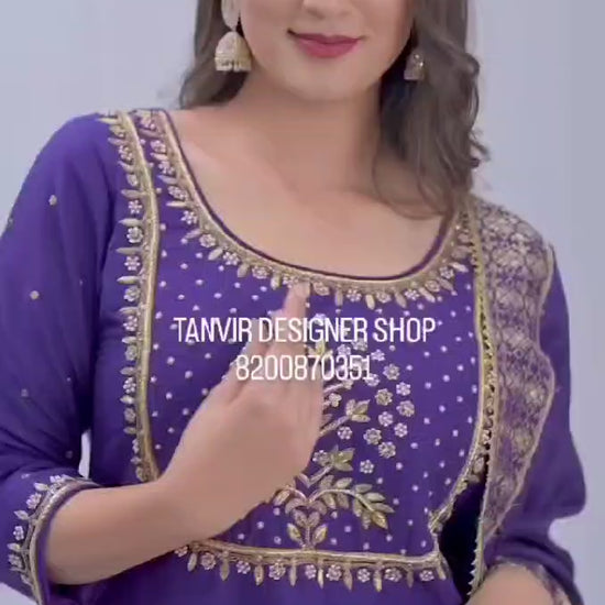 Step into elegance with this stunning purple color Zardozi & pearl work designer kurta set. Adorned with intricate hand-embroidered Zardozi and delicate pearl embellishments, this outfit exudes royal charm. Crafted from premium fabric, it offers a perfect blend of tradition and sophistication, making it ideal for weddings, festivities, and grand celebrations.