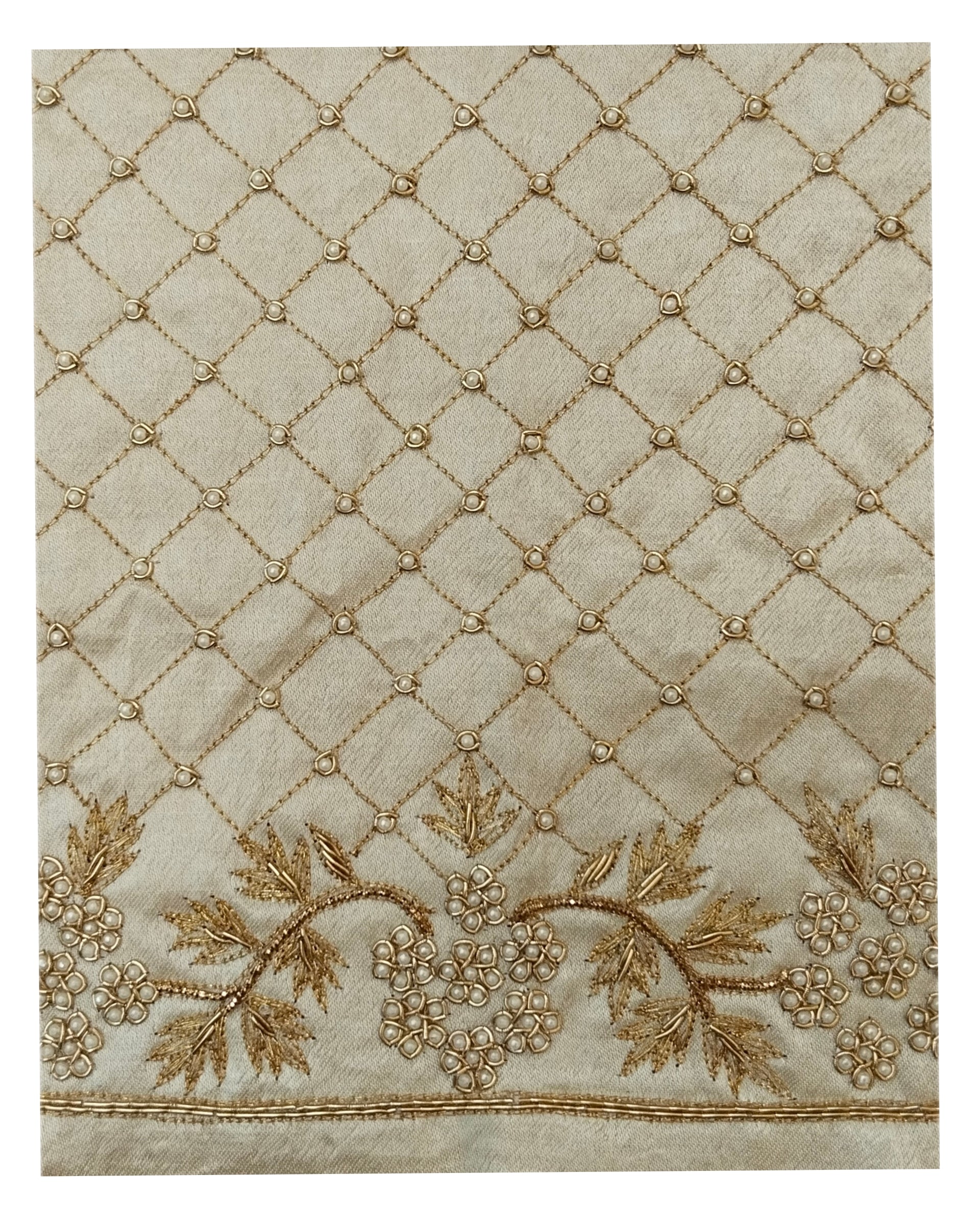 Experience timeless elegance with our unstitched Gaji silk blouse fabric, adorned with intricate Zardozi handwork. Rich in tradition and detail, this piece offers customizable stitching from size 36 to 46. Perfect for festive and wedding wear, it blends regal charm with versatility for a truly bespoke look.