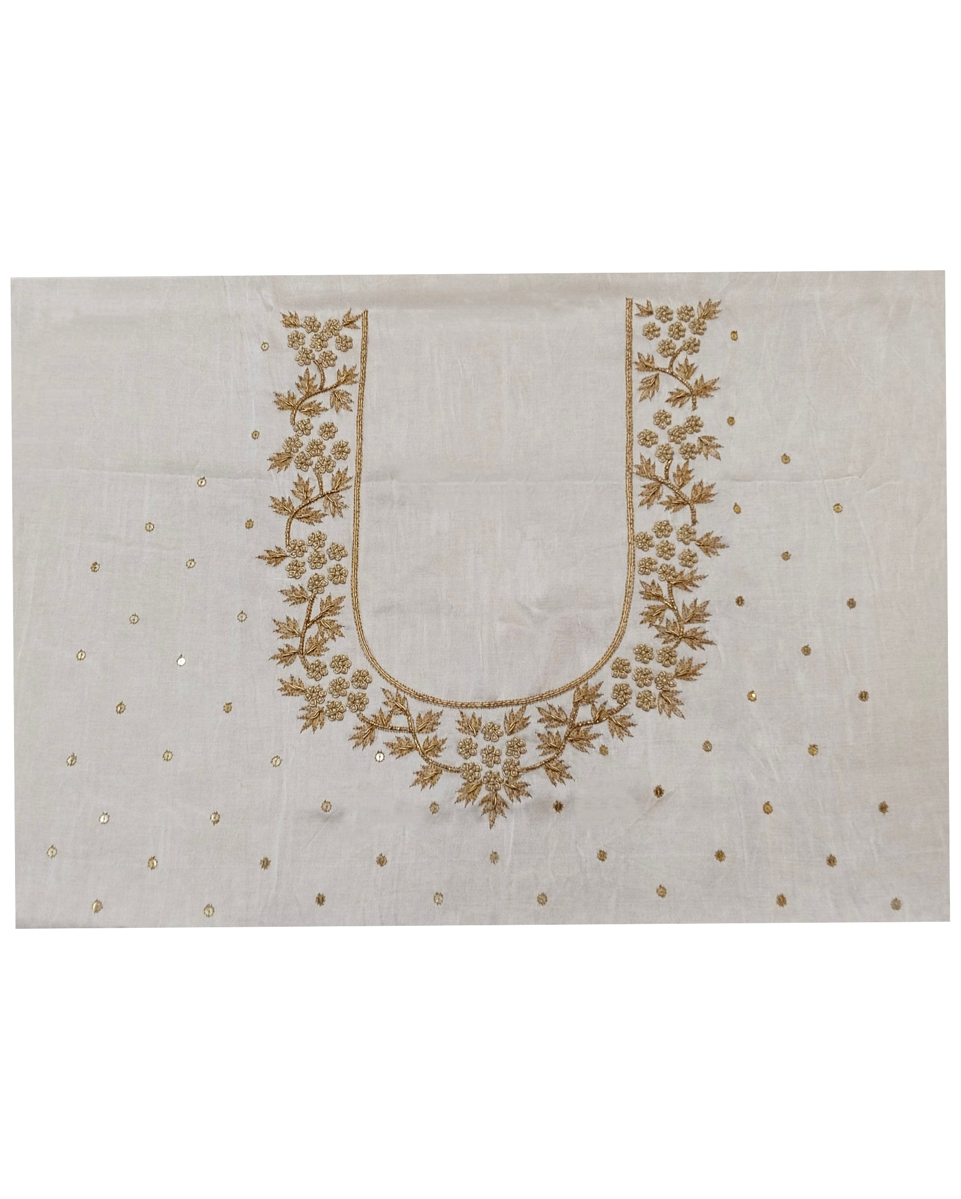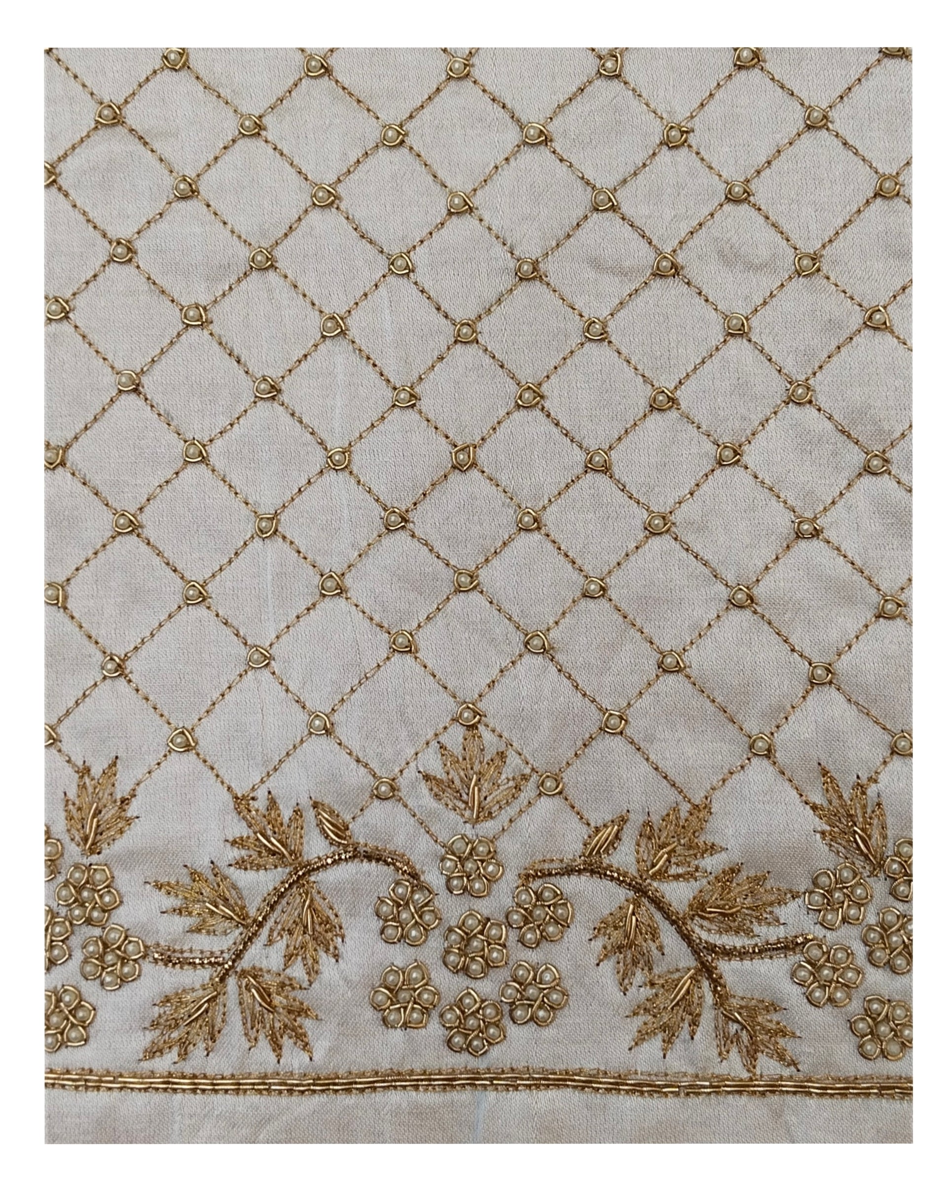 Experience timeless elegance with our unstitched Gaji silk blouse fabric, adorned with intricate Zardozi handwork. Rich in tradition and detail, this piece offers customizable stitching from size 36 to 46. Perfect for festive and wedding wear, it blends regal charm with versatility for a truly bespoke look.