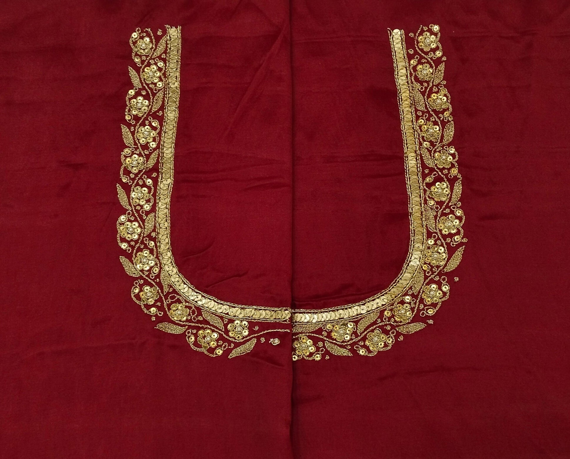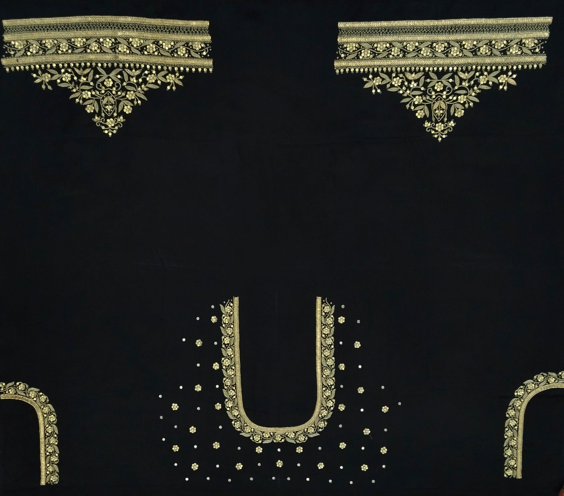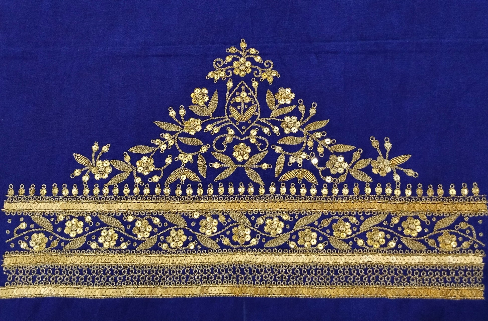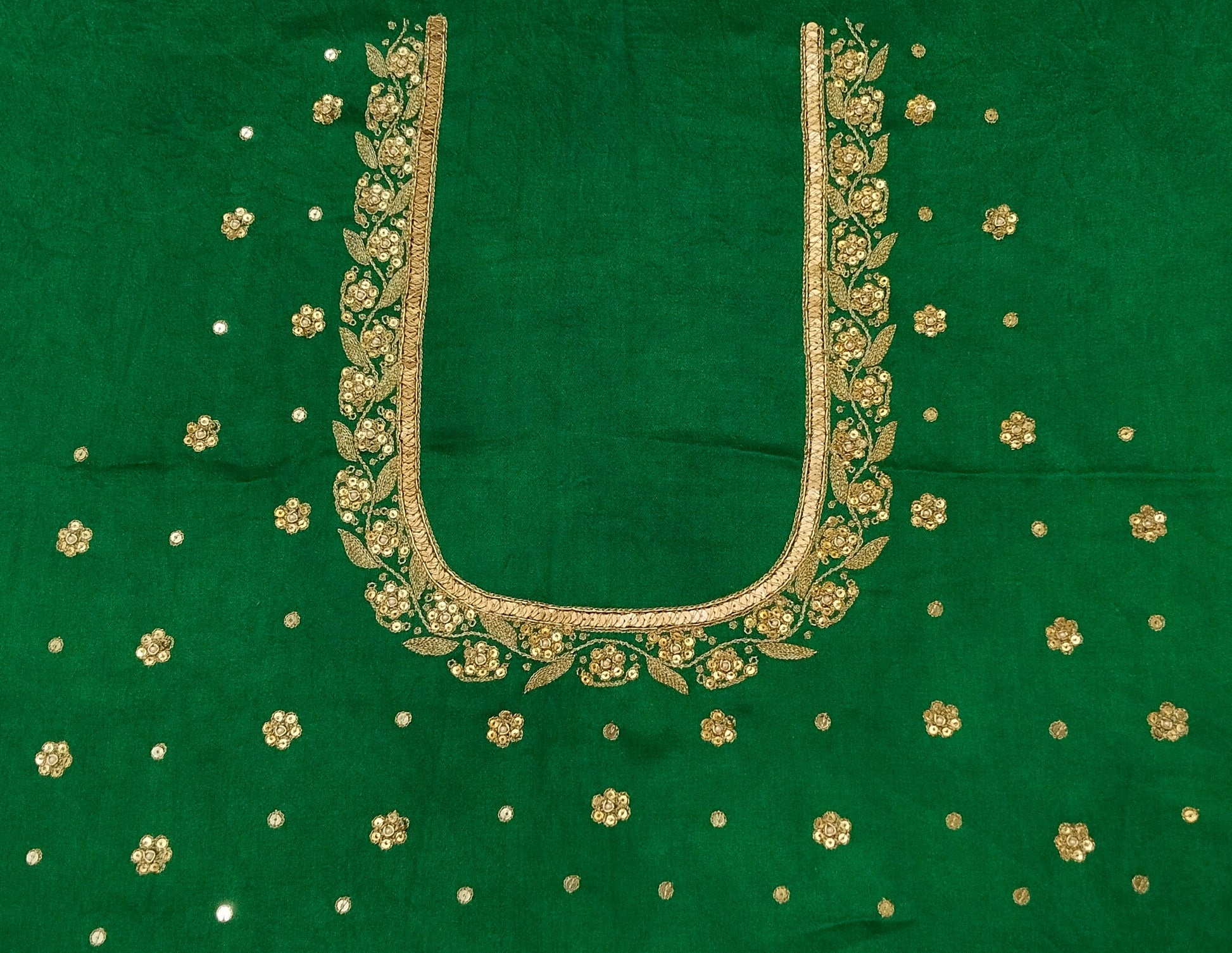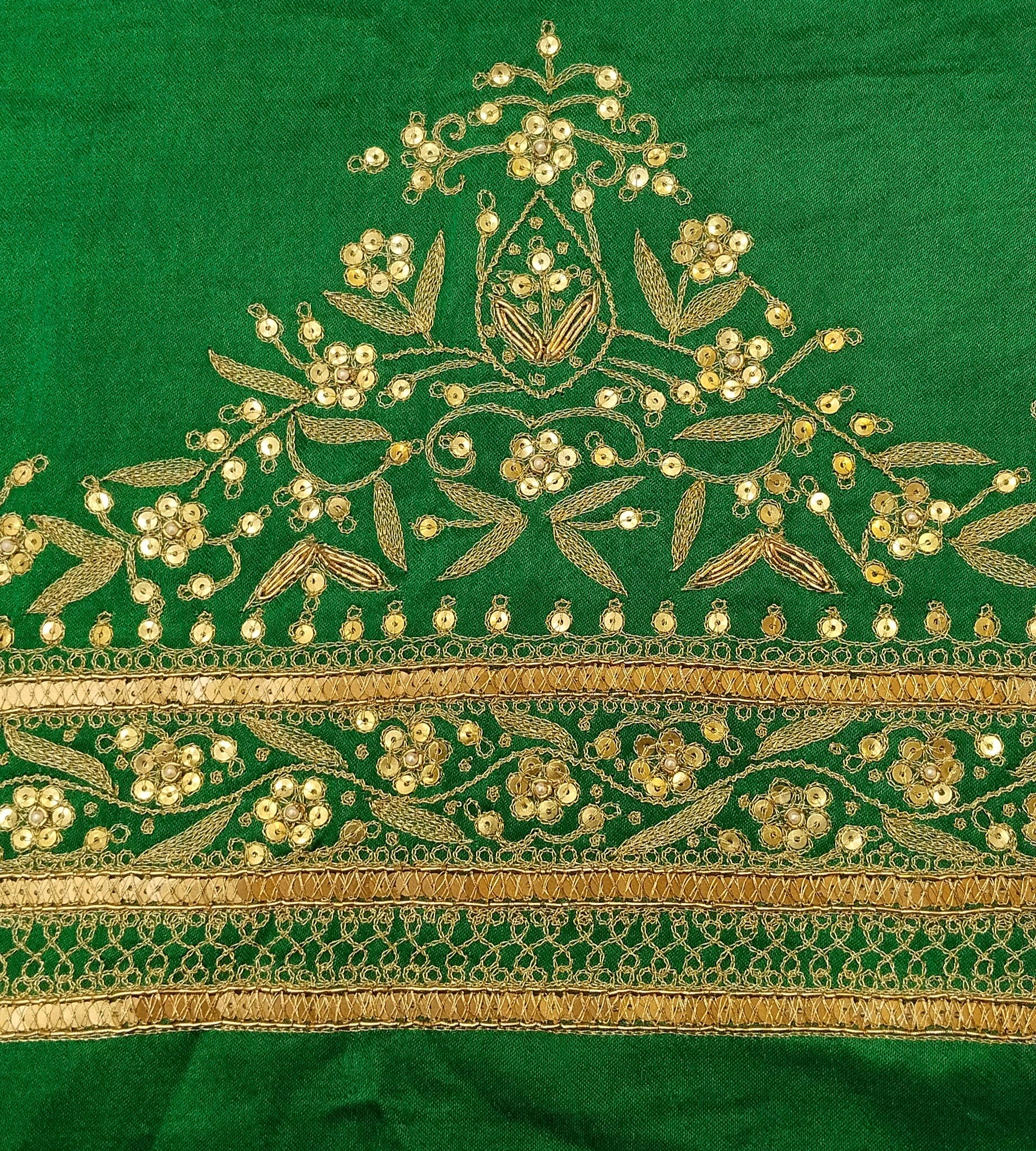 Gracefully designed with ornate embroidery and shimmering accents, this unstitched blouse piece is crafted from luxurious Gaji silk. It showcases an artistic blend of floral and geometric elements, while the central motif and intricate borders make it a refined choice for festive or occasion wear, bringing a timeless elegance to your wardrobe.