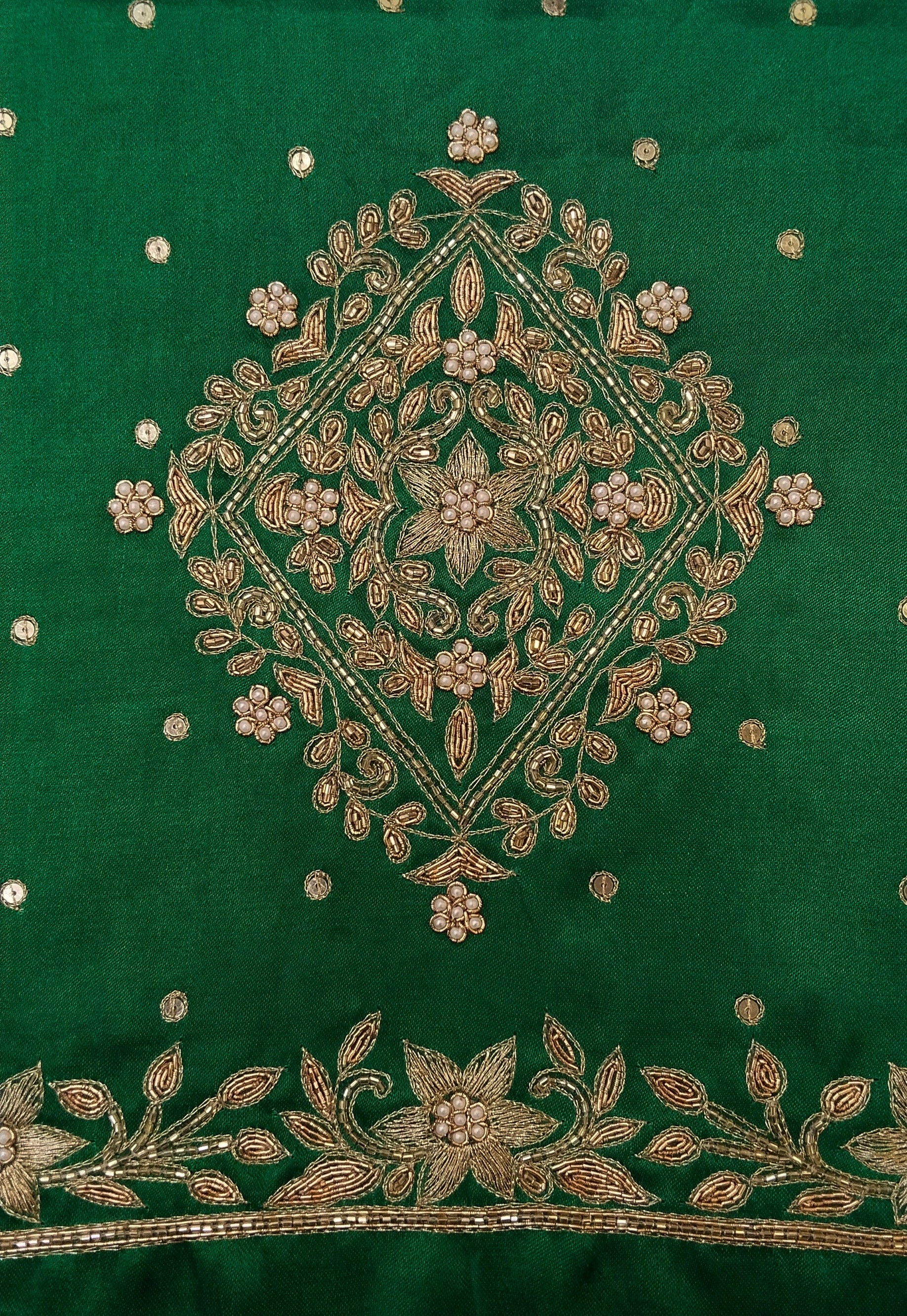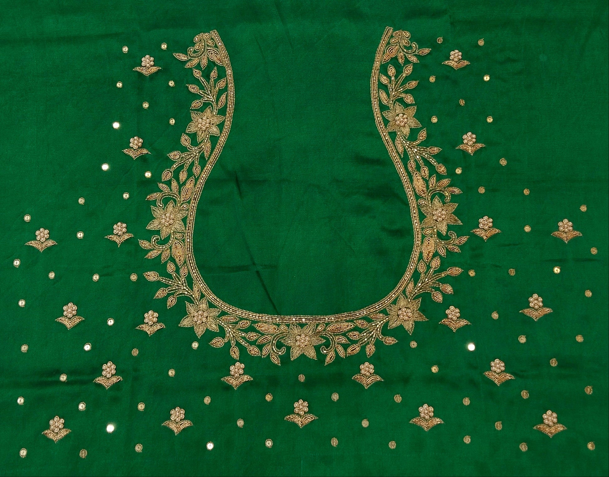 An Antique Blouse piece zardozi work is one that has been carefully embellished with hand embroidery utilizing metallic threads. The ancient Indian art of zardozi embroidery was originally employed to embellish the garments of royalty and the affluent.