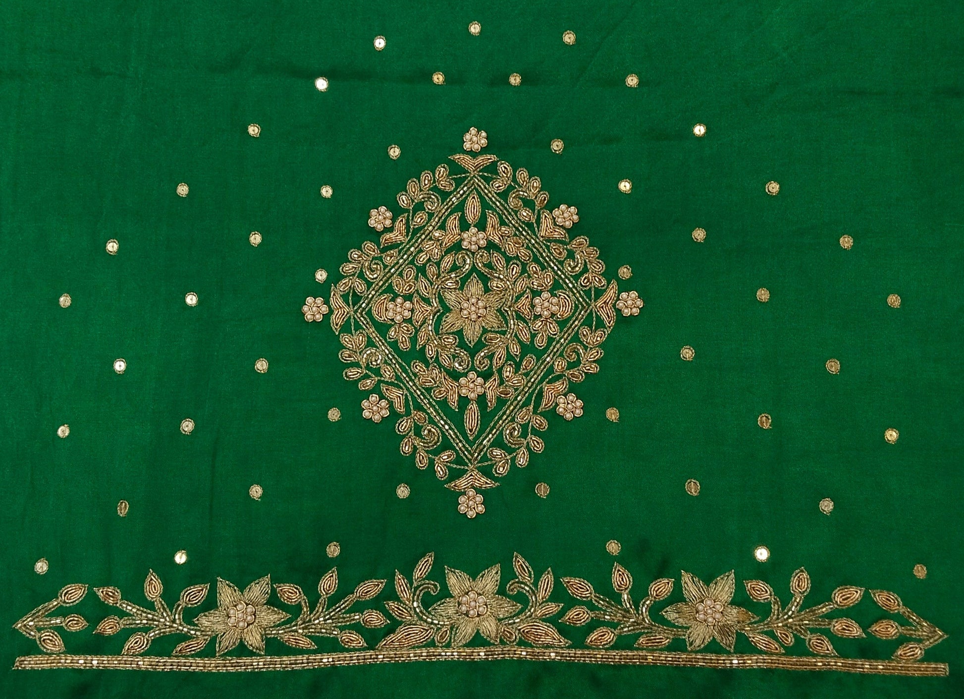 Embrace the majestic allure of the star flower zardozi work blouse pis, for a queen. The intricate Zardozi work depicting star motifs adds an elegant touch to the blouse, exuding regal charm. Crafted from premium gajji silk, the blouse offers a luxurious and comfortable fit, perfect for formal occasions or special events. Let the star-inspired design take flight and make a statement.