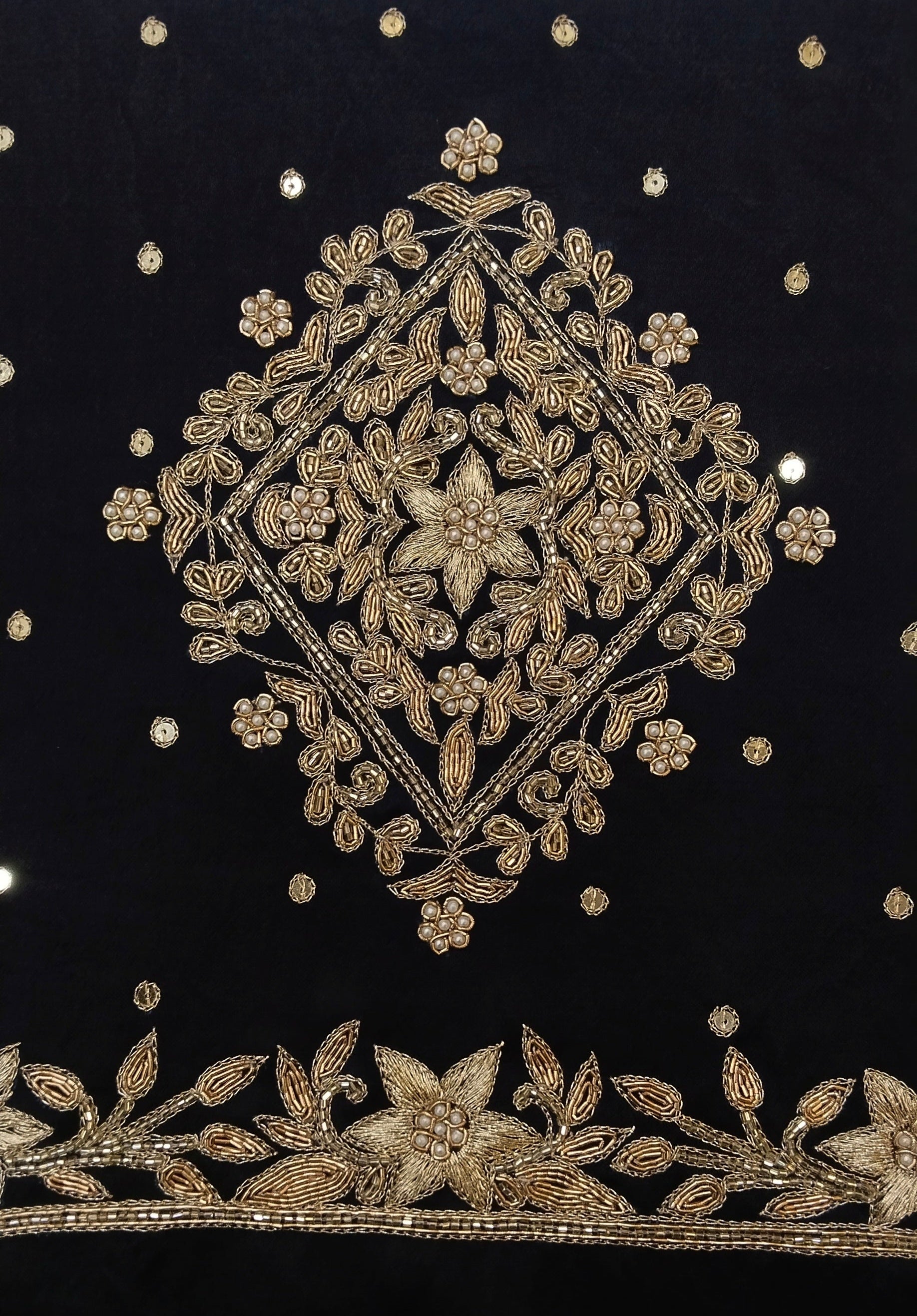 Embrace the majestic allure of the star flower zardozi work blouse pis, for a queen. The intricate Zardozi work depicting star motifs adds an elegant touch to the blouse, exuding regal charm. Crafted from premium gajji silk, the blouse offers a luxurious and comfortable fit, perfect for formal occasions or special events. Let the star-inspired design take flight and make a statement.