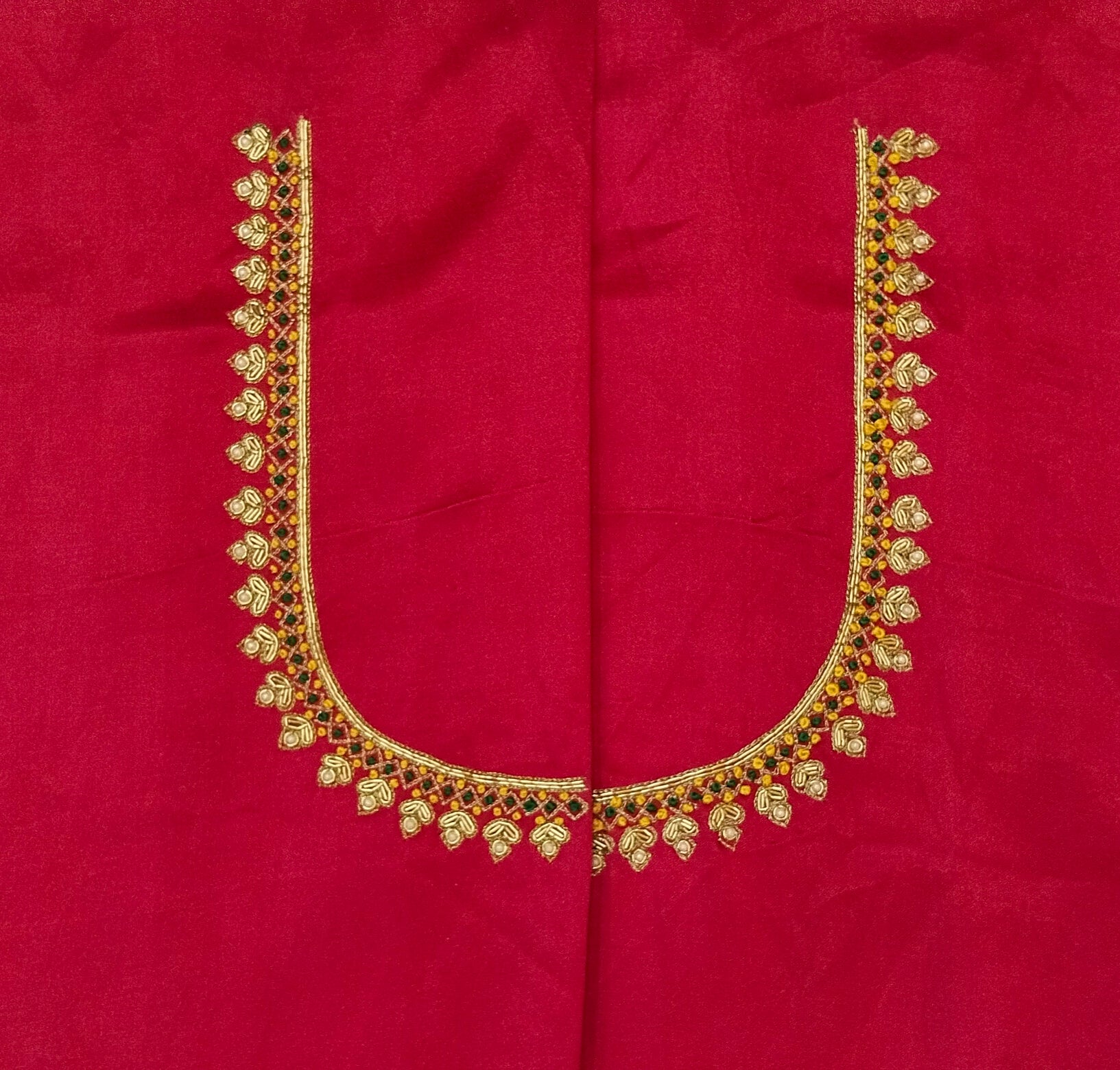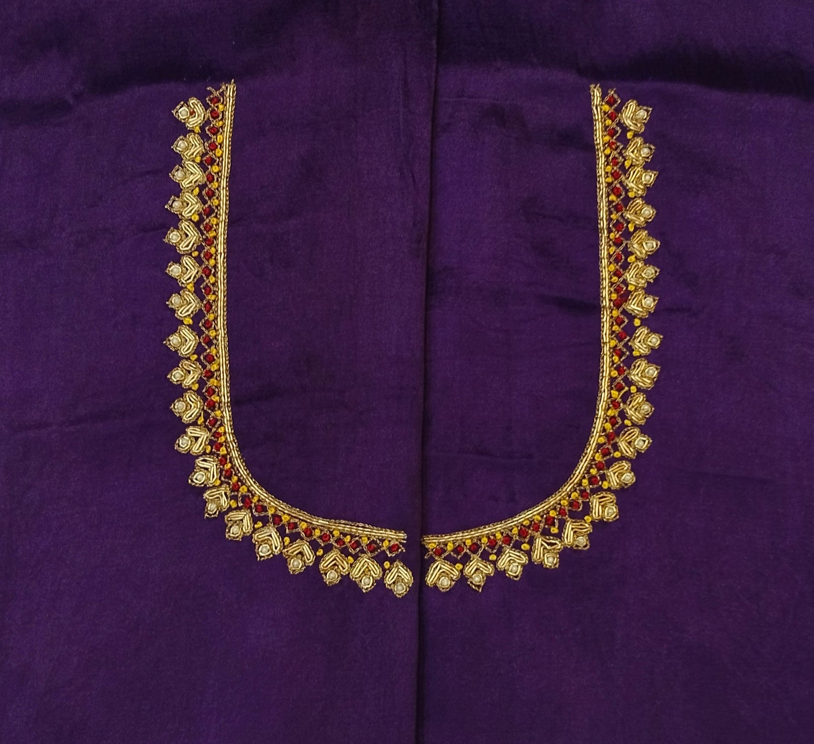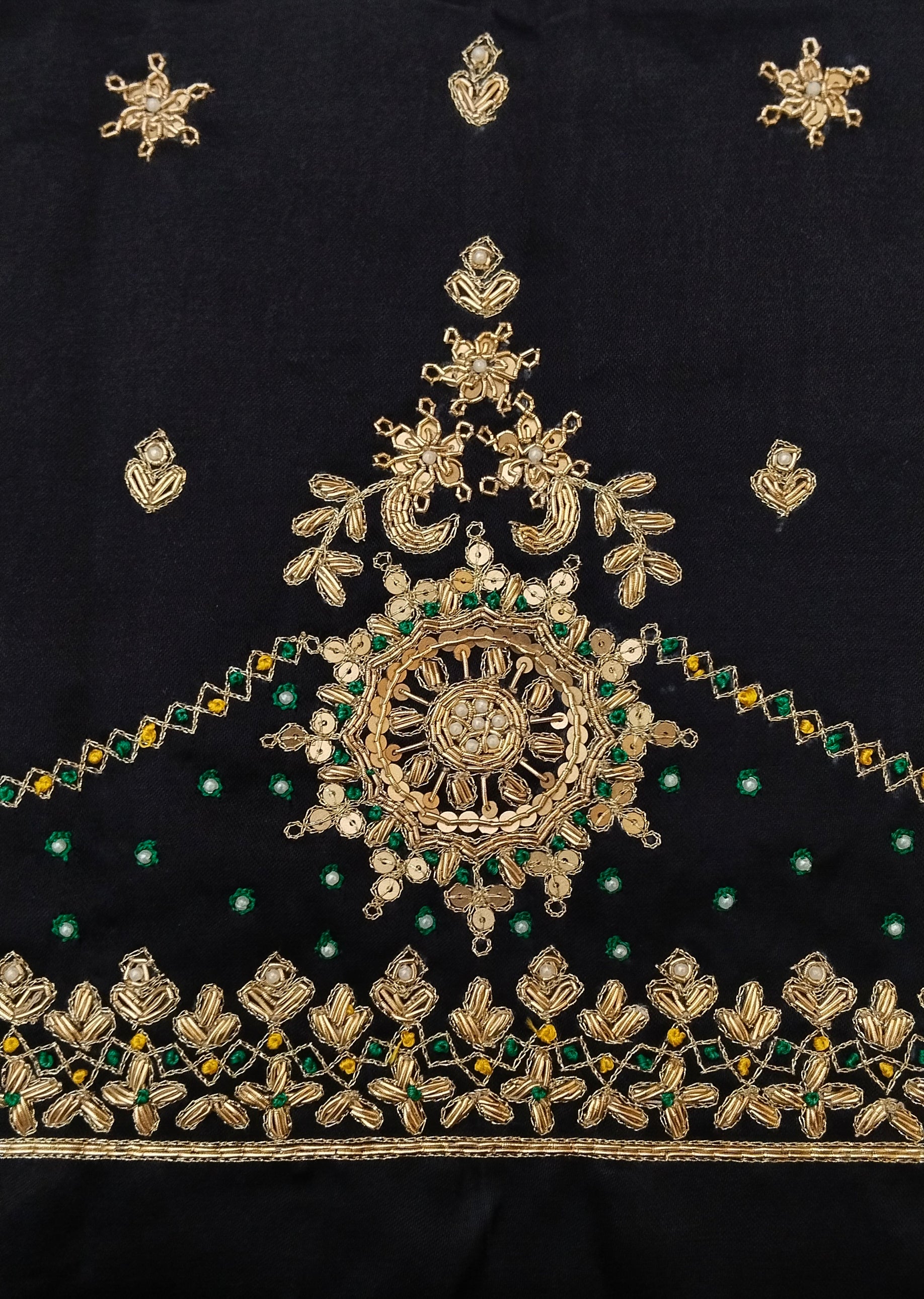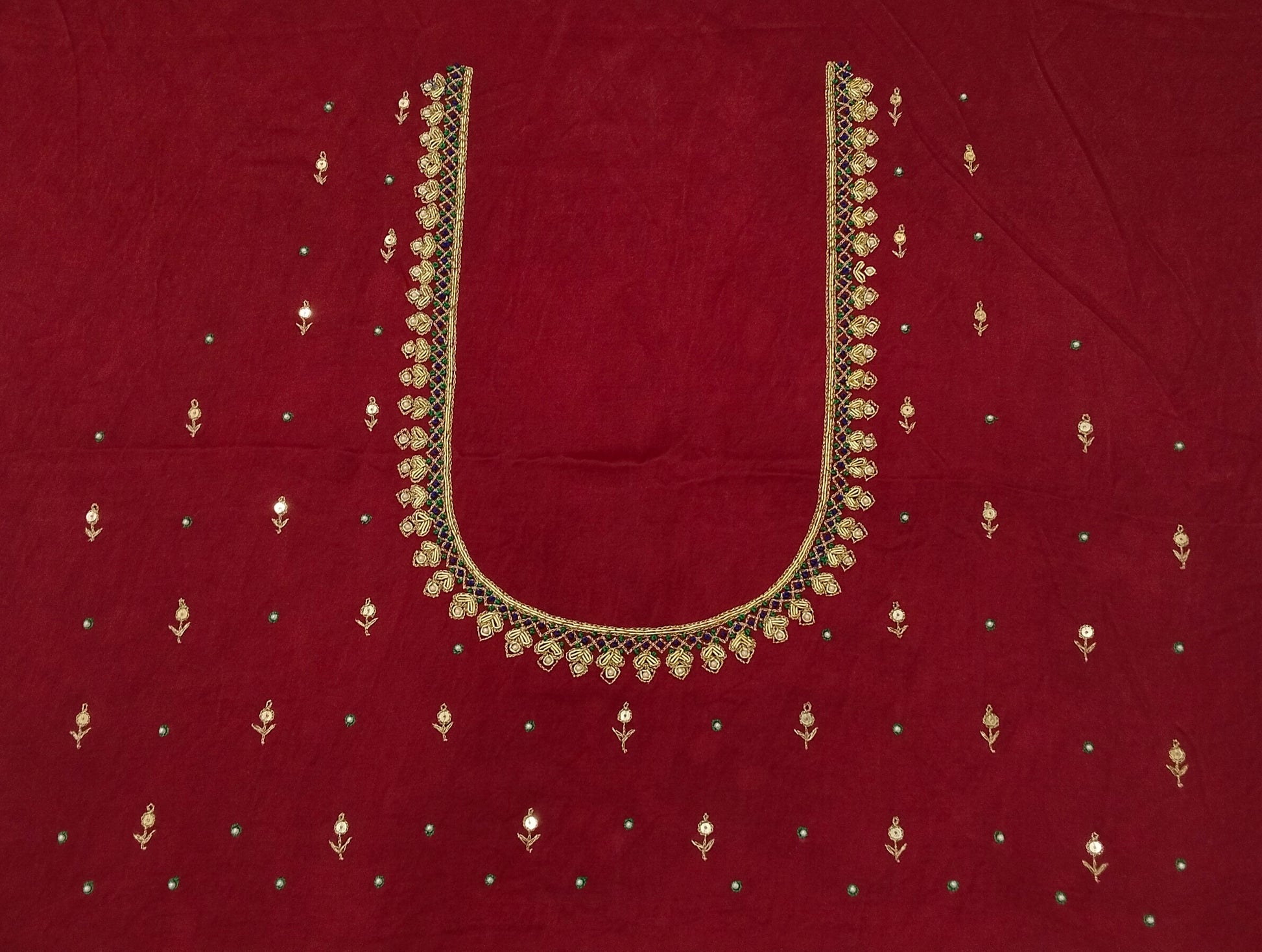 This unstitched blouse piece features a radiant sun-inspired design, echoing traditional elegance with a regal touch. Crafted from luxurious Gaji silk, the fabric showcases detailed embroidery and a smooth drape, making it perfect for festive or ceremonial wear. A blend of heritage and refined craftsmanship, it elevates any ethnic ensemble with timeless charm.