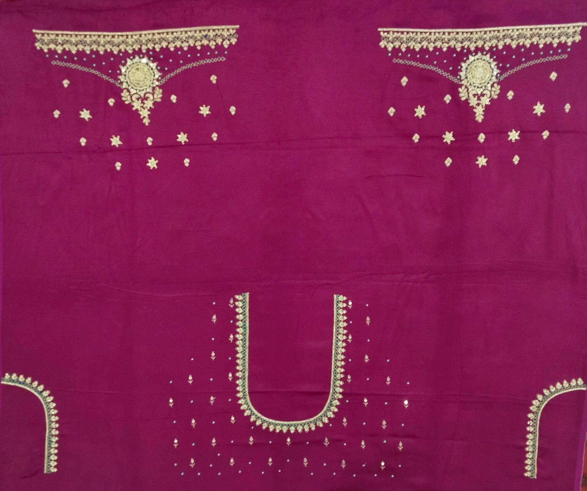 This unstitched blouse piece features a radiant sun-inspired design, echoing traditional elegance with a regal touch. Crafted from luxurious Gaji silk, the fabric showcases detailed embroidery and a smooth drape, making it perfect for festive or ceremonial wear. A blend of heritage and refined craftsmanship, it elevates any ethnic ensemble with timeless charm.