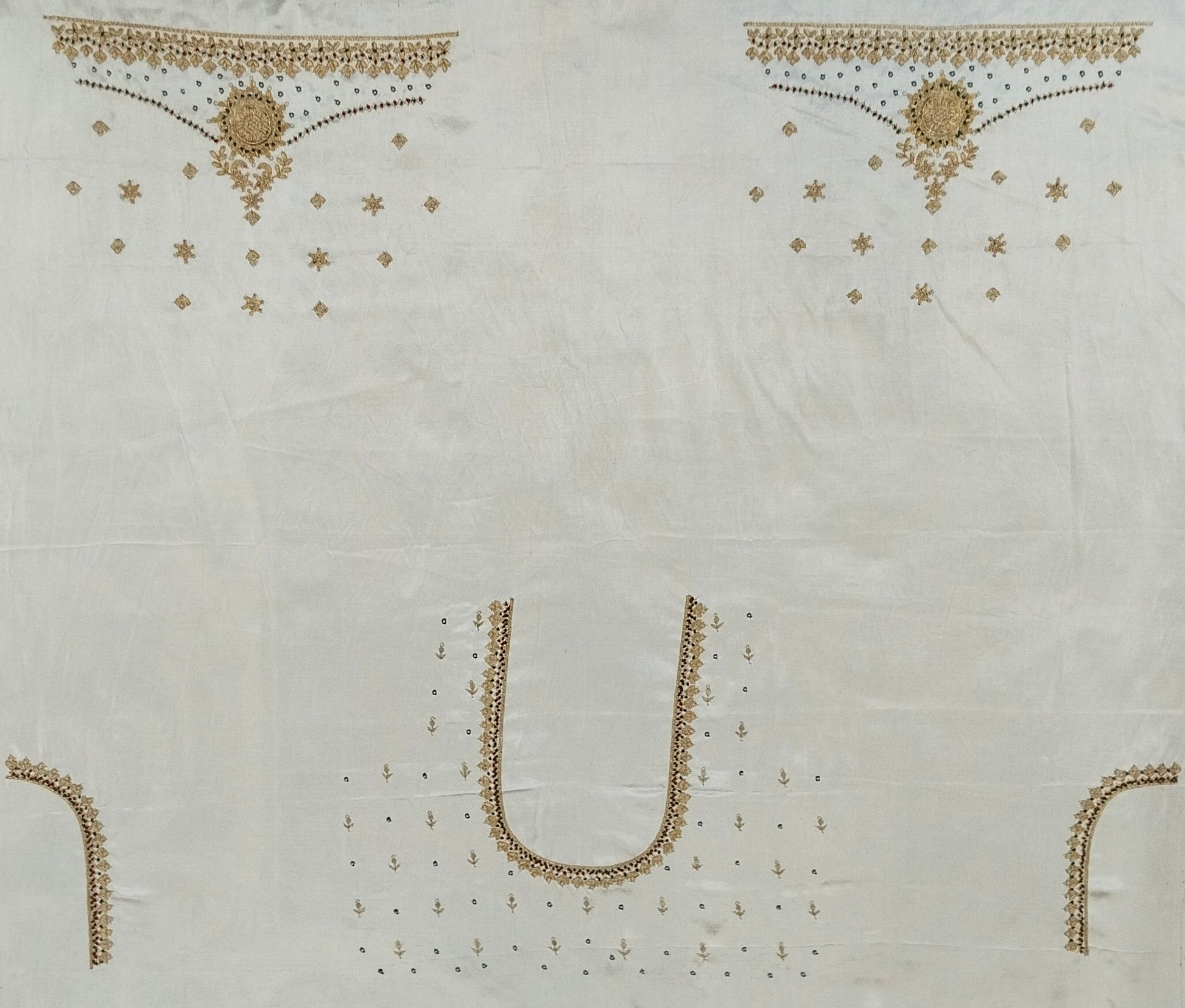 This unstitched blouse piece features a radiant sun-inspired design, echoing traditional elegance with a regal touch. Crafted from luxurious Gaji silk, the fabric showcases detailed embroidery and a smooth drape, making it perfect for festive or ceremonial wear. A blend of heritage and refined craftsmanship, it elevates any ethnic ensemble with timeless charm.