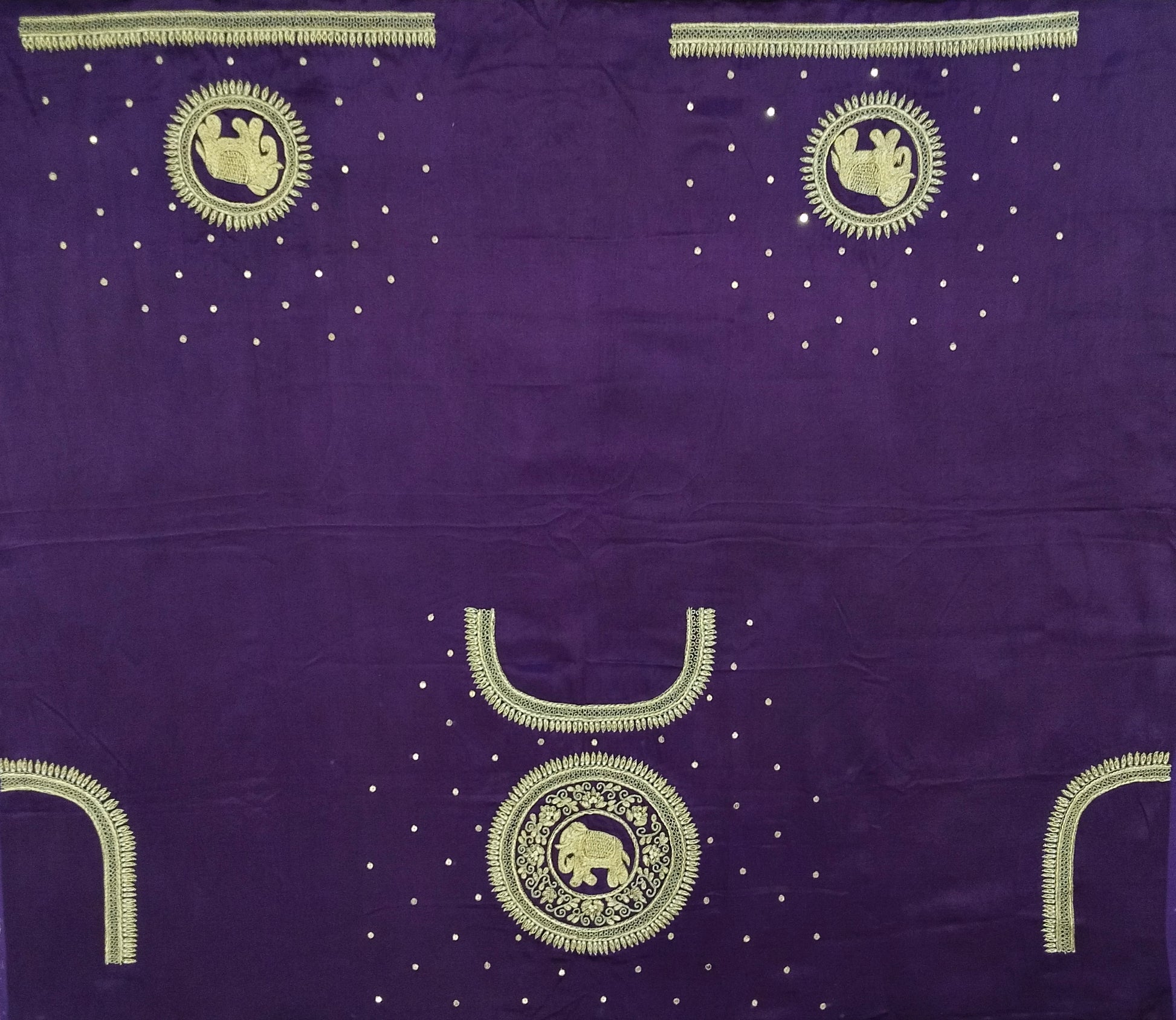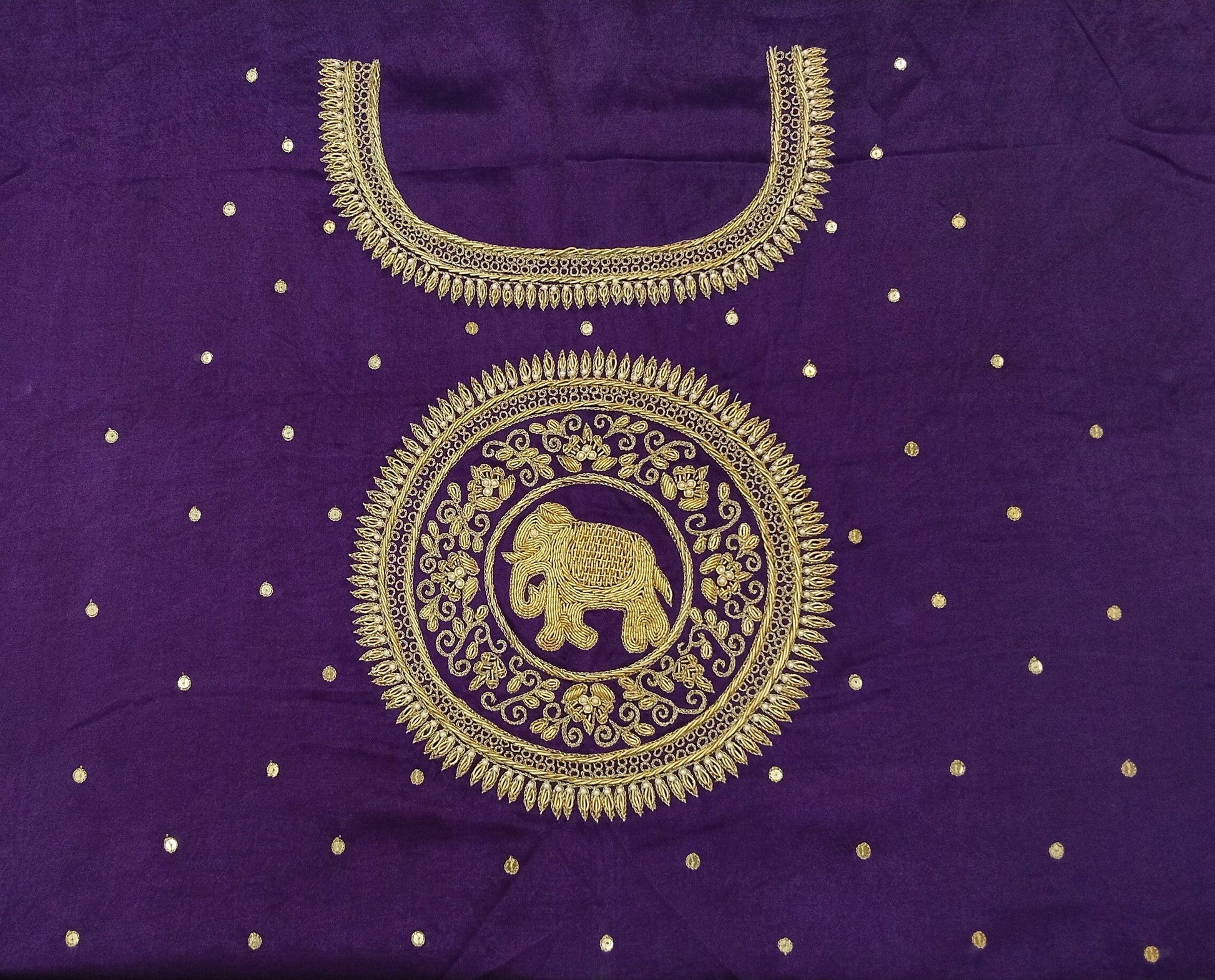 This unstitched blouse piece showcases a refined elephant motif, inspired by heritage art and symbolic grace. Designed on premium Gaji silk, the fabric offers a soft sheen and elegant drape. Ideal for pairing with sarees or lehengas, it adds a touch of cultural richness and sophistication to festive or ceremonial attire.
