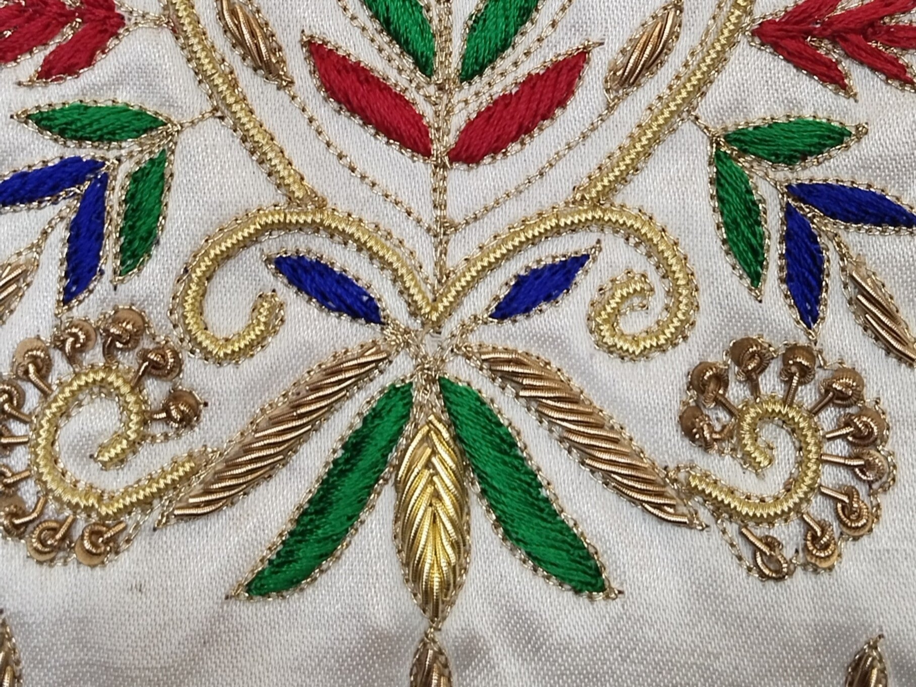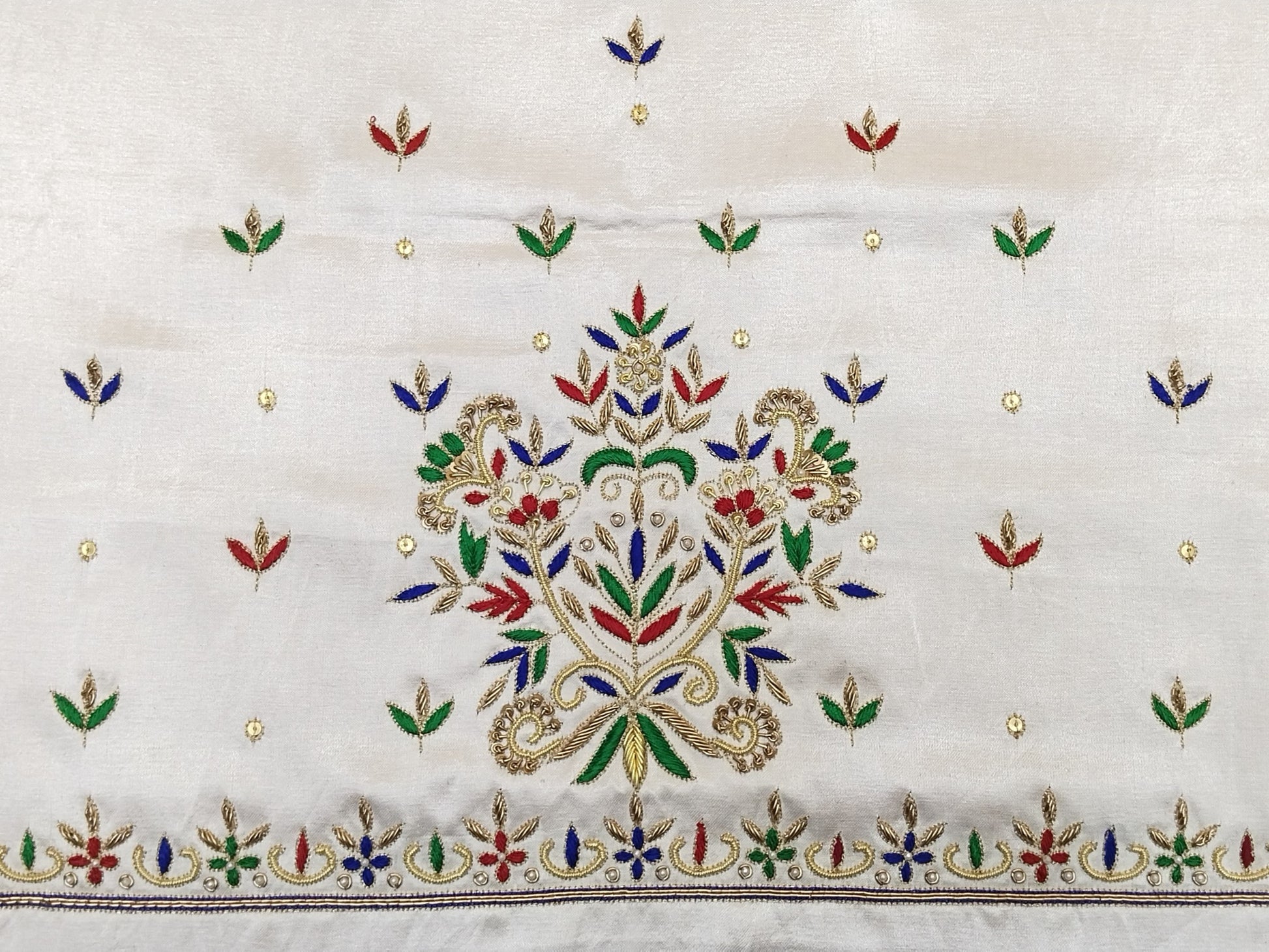 Elevate your ethnic style with this stunning Gaji silk designer blouse, featuring exquisite Zardozi handwork. Crafted with rich texture and intricate embroidery, it adds royal charm to any saree or lehenga. Perfect for weddings, festivals, and special occasions—make a statement with timeless elegance and luxurious craftsmanship.