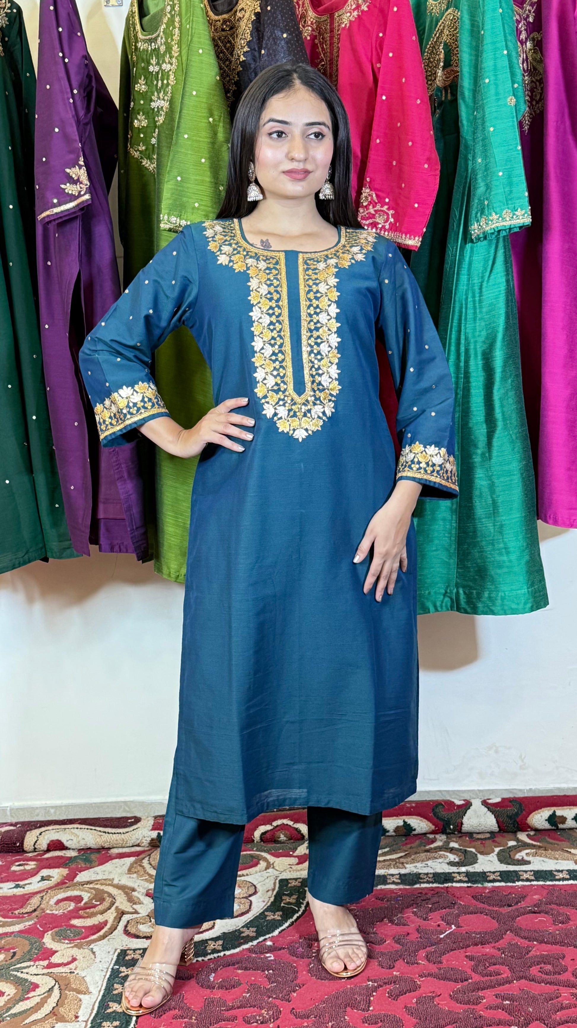 The Zayna Noor Kurta Set is crafted from luxurious Gaji silk and adorned with fine floral embroidery that adds an elegant glow to your ethnic ensemble. The intricate handwork and rich texture make it an ideal choice for festive gatherings, intimate functions, or elegant celebrations.
