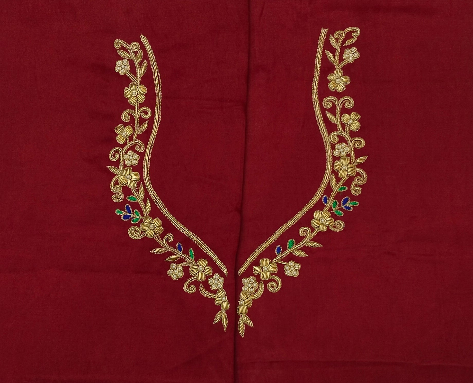 Zehra Taar Embellished Blouse Piece (Maroon)