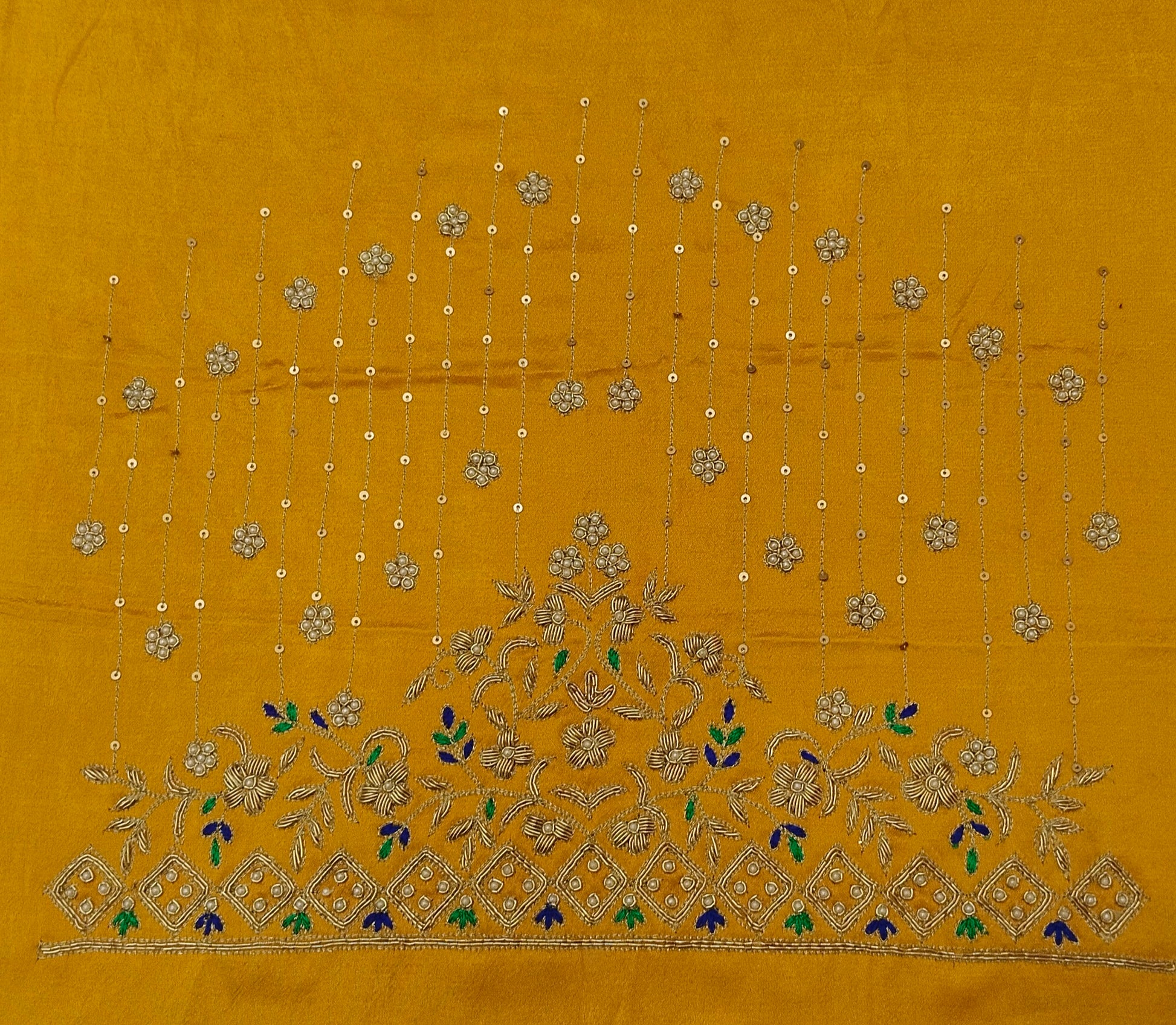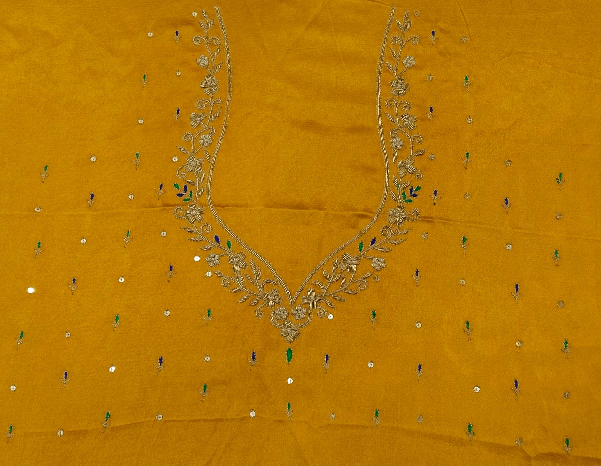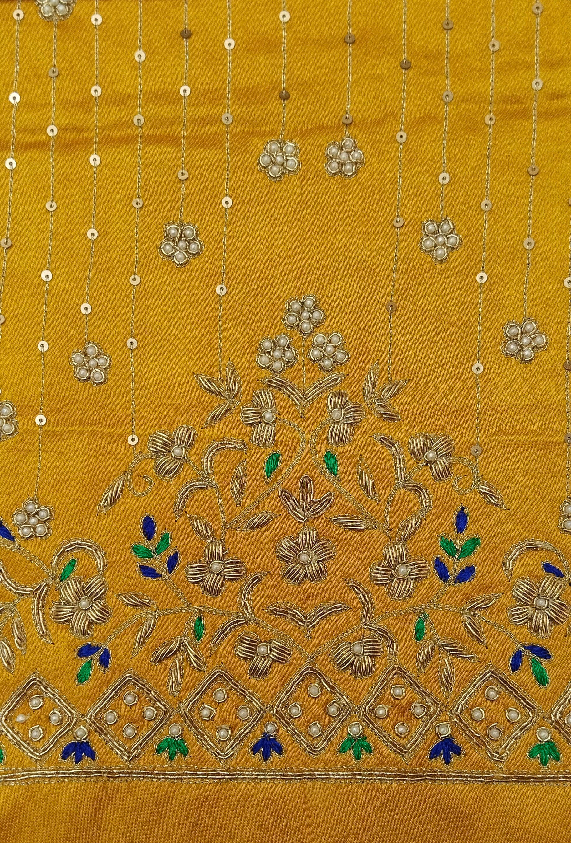 Zehra Taar Embellished Blouse Piece (Mustard Yellow)