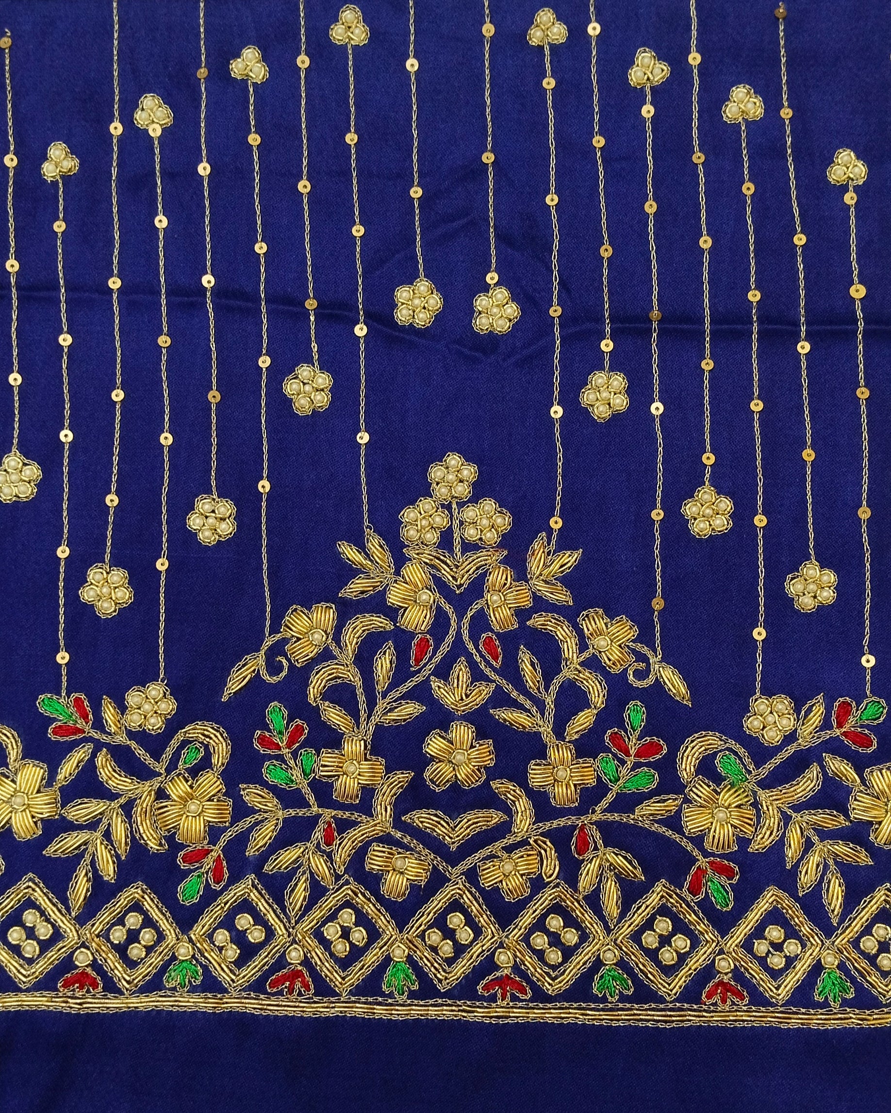 Zehra Taar Embellished Blouse Piece (Royal Blue)